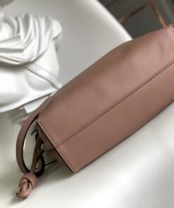 Loe*weFlamenco 2022升级版福袋系列到货采用拉绳收紧 并打上标志性的盘绕结 选用优质柔软小牛皮 “肩背 斜挎或手拿*可拆卸和可调式肩带*朴素的磁扣开合 金色绒面革衬里*Anag ram 压纹 型号:10856大号(豆沙粉)Size:30*24.5*10.5cm :()