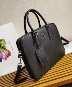 正品级 【顶级原单】P家(大号)超级爆款杀手包,原单品质 Saffiano皮革 皮革双提手 可拆卸可调式皮革肩带 镀金配件 三角形皮革上带有金属刻字徽标 侧面按扣开合 两个拉链外袋 三个内袋,其中包括一个拉链袋 Prada标识衬里型号:1BA274,代工码165,尺寸:32×24×14cm!