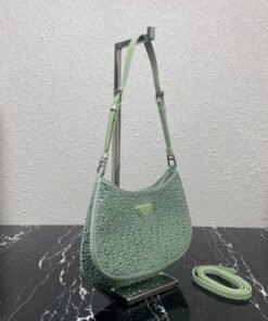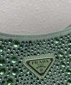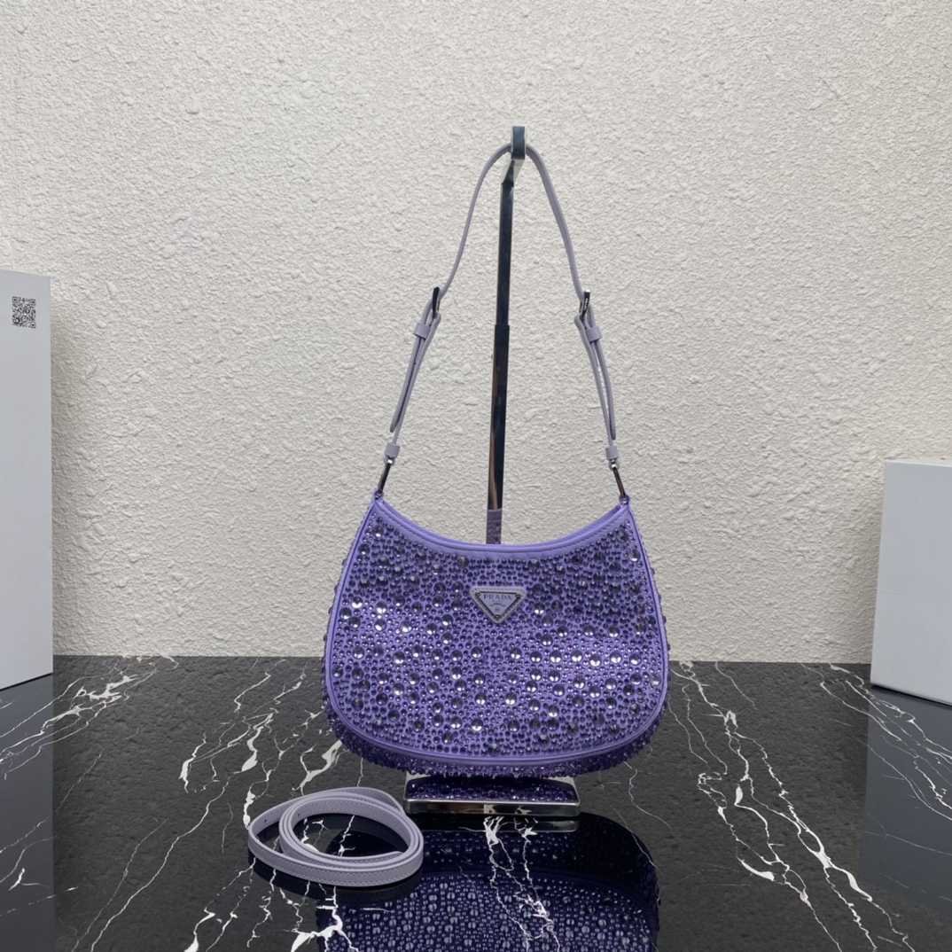 正品级 原厂皮版本 【顶级原单】?满天星腋下包?1BC169 ?这款Cleo 缎面手袋覆满大小各异的闪耀进口水晶,可调式两条交换牛皮肩带,便于肩背/斜跨设计,焕发精致魅力。复古的弧形廓形别出心裁。显得这款满天星腹下包更加柔美,优雅,摩登。太美了?走到那回头率都是焦点?赶紧入手吧??尺寸:长22x高18.5x底4.5cm