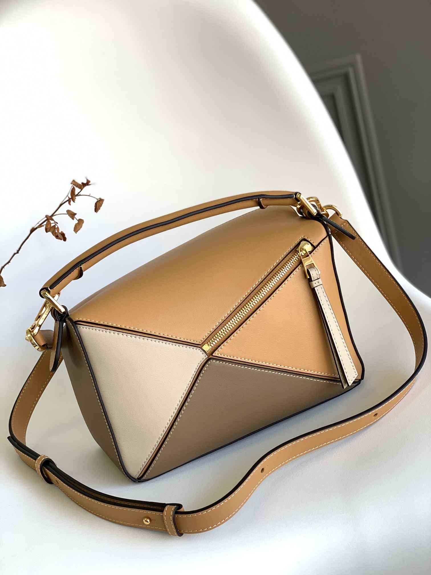 Loe*we爆款uzzle small(小号24CM)出货小号几何包 以小牛皮镶嵌工制成[玫瑰]集斜挎 肩背 手拿 或顶部提手携带 可拆缷,可调节肩带 拉链封口 皮革拉链头,外部后方拉链袋 内部插袋 可以使用肩带和个性化挂饰进行定制 人字纹棉帆布衬里 受众多明星青睐 人人都想拥有的包包size:24*16.5*10.5cm型号:261801 :()