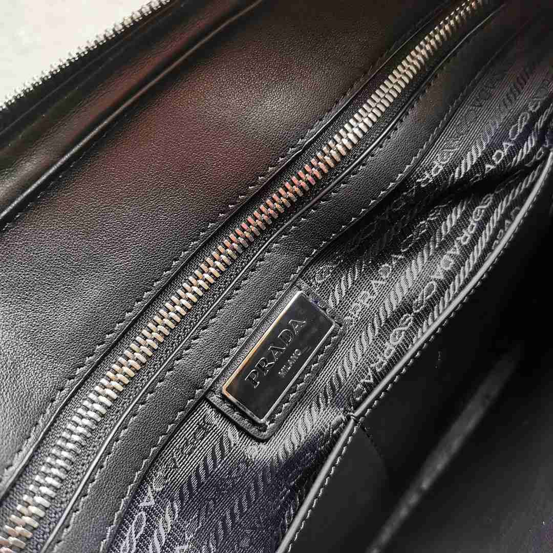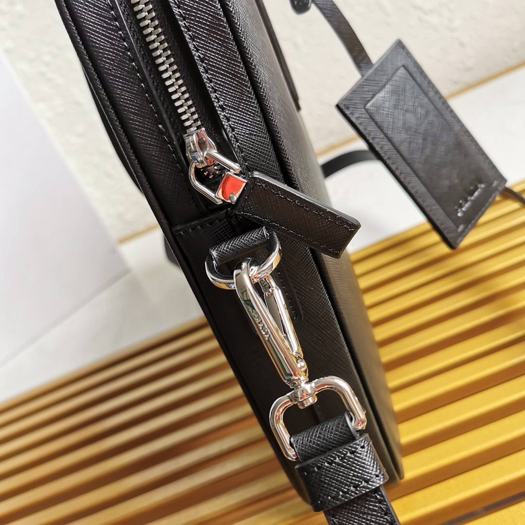 正品级 【顶级原单】新款男士公文包2VE368到货采用进口Saffiano十字纹牛皮,双提手,可拆卸可调式皮革肩带,抛光钢质配件,内部徽标标牌和外部金属徽标,内部专用夹层:iPad保护袋、一个拉链袋和两个手机袋,织物衬里,姓名牌 这款皮革公文包精选Saffiano皮革制成,三角形饰件搭配金属Prada刻字徽标标识。有一个姓名标牌,可拆卸肩带、一个iPad口袋和两个手机袋。适合商务人士日常使用,同时亦具功能性️️男士们赶紧入手吧尺寸:长36cm高28cm宽4cm