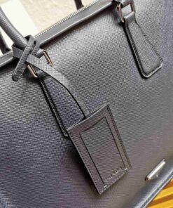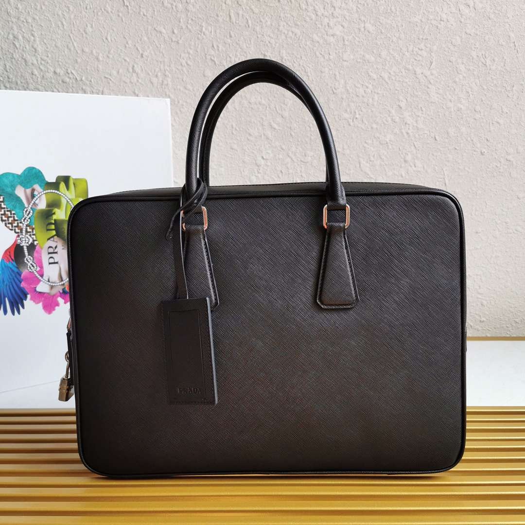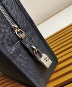 正品级 【顶级原单】Prada专柜最新款男士手提公文包采用顶级原单十字纹牛皮和顶级抛光不锈钢饰面金属配件,可调式肩带,带皮革饰边的Prada徽标织物,一个拉链袋,两个手机袋,一个侧壁缝合口袋手提带 这款精致优雅的皮革公文包配有金属配件和可调式肩带,并以正面徽标和内部徽标牌装饰。适合商务人士日常使用,同时亦具功能性型号:2VH1026,颜色:深蓝,尺寸:高28cm长38cm宽8cm