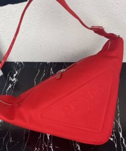 正品级 原厂皮版本 【顶级原单】?帆布大三角包?2VY007?全网追爆大三角包来啦?这款多功能的三角形帆布斜挎包以新颖方式重释,配有可调式肩带便于以不同方式背携。精美的同色涂漆金属三角标显出大气?,大三角设计能装能扛,战力十足,实在太塔了,休闲风格增加了大大少年感!太完美了?上街潮流十足?尺寸:袋口长60/底长22.5x高宽28cm