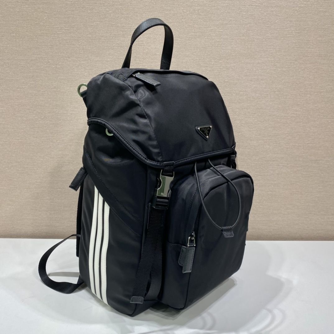 正品级 ad和Pd合作设计?2VZ135两大品牌合作?这款ad和pd合作设计双肩背包。采用Re-Nylon和Saffiano皮革,侧边配有ad经典撞色三条牛皮纹饰,和联合环保唛头。显得格外新颖和休闲??上身效果非常棒??赶紧入手吧??长27x高45x底17cm??????