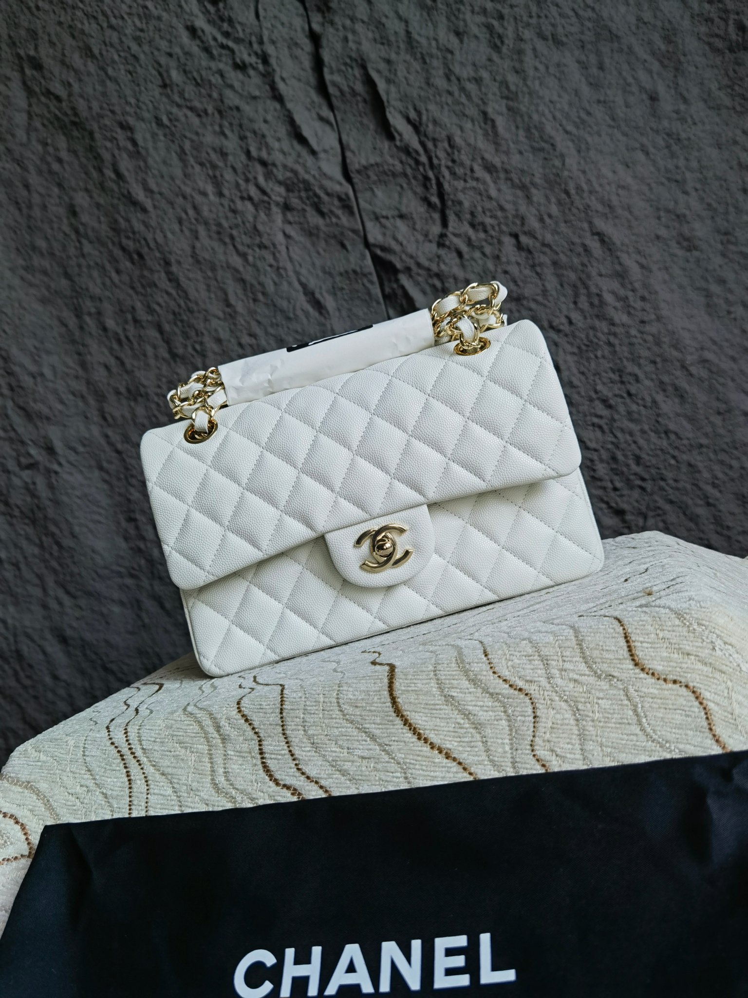 25BNew ModelwocDualC按Kòu可调节链条包身保留了经典的DualC logo、Diamond Pattern、Flip Cover、Leather chain,All of these areChane1The most commendable element of the bag,Of course, today’s model not only continues its classic exterior design but also,还在链条上点缀亮眼的DualCKòu,Adjustable design is particularly innovative and unique.,Simple, elegant, and exquisite~Although the bag is small,However, it has a widened base design.,So it can be stuffed full.,Capacity is fully sufficient。How to save time in outfit coordination,Can be carried out at home,Super convenient!ASize:12193.5cm