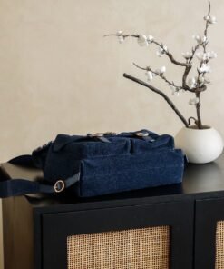 The 15-year Austria Salzburg series by Karl Lagerfeld is a masterpiece. It’s the golden buttoned cable-knit double backpack that looks stunning on the Chanel Show edition. Made of deep blue denim with a slight sheen, it has a soft velvet interior that feels luxurious to touch. The gold buttons are designed in a cable-knit pattern, and there’s also a metal double C clasp at the drawstring area. ThisBag is full of details.