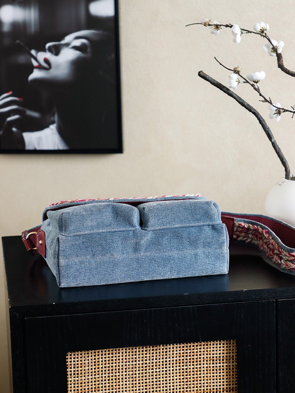 The same as Jisoo’s Salzburg crossbody bag, the 15-year Austria Salzburg series by Karl Lagerfeld is a masterpiece. It is a stylish golden buttoned cable knit double strap backpack that looks amazing on Chanel showStyle. It has a deep blue denim with a slight sheen and aVelvet Touch. The inner material is very high-grade satin, which feels comfortable to touch. The gold buttons are in the cable knit design, and there’s also a five-metal double c clasp at the drawstring area. The whole bag exudes a sense of detail. It measures 27cm in size.