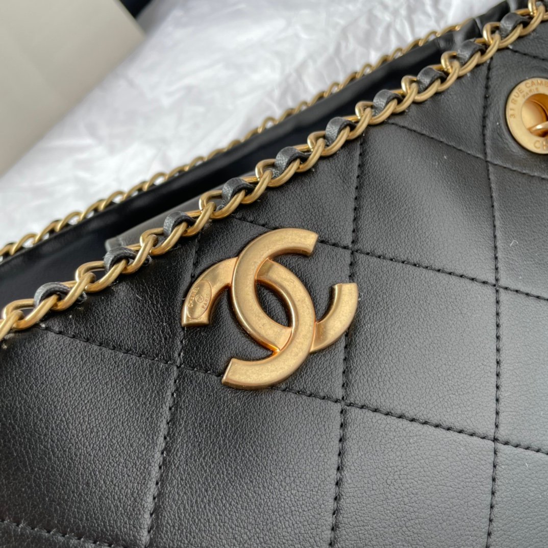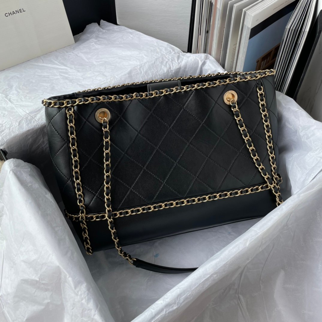 AS2761 Chanel New Mini Leather Shopping Bag Travel Season Limited Edition Shopping Bag Chain Feel Can Be Salty And Sweet Versatile And Relaxed Classic Black Lining With Gold Chain Leather Multiple Ways To Carry, Huge Capacity Simply Love It Too Late To Meet