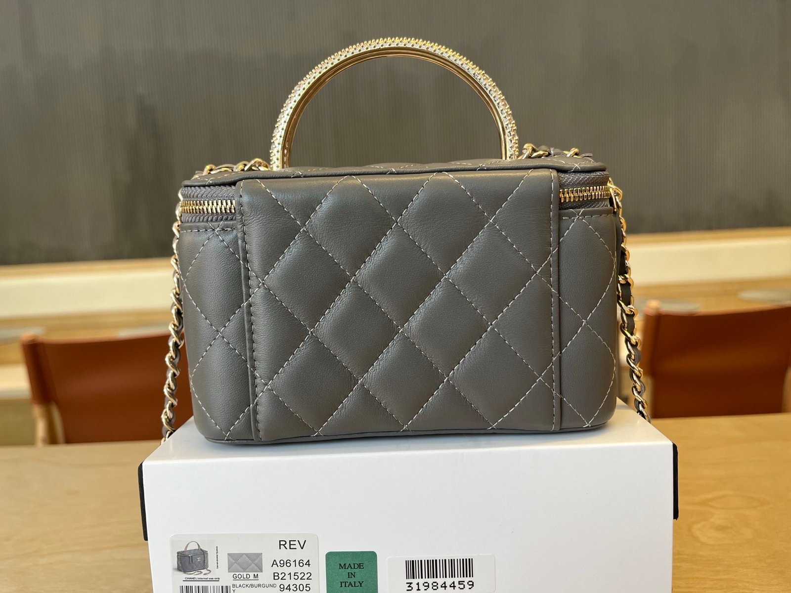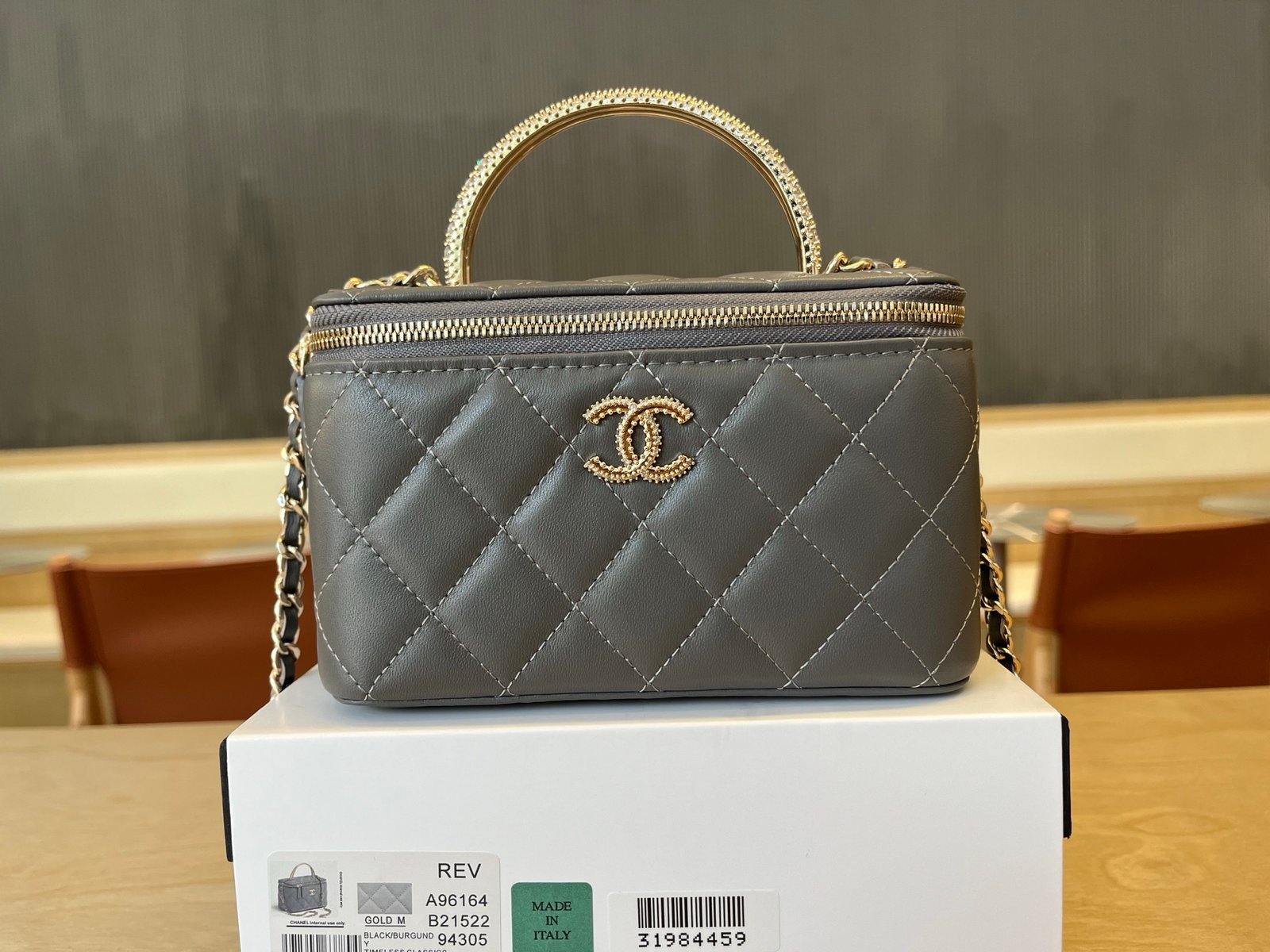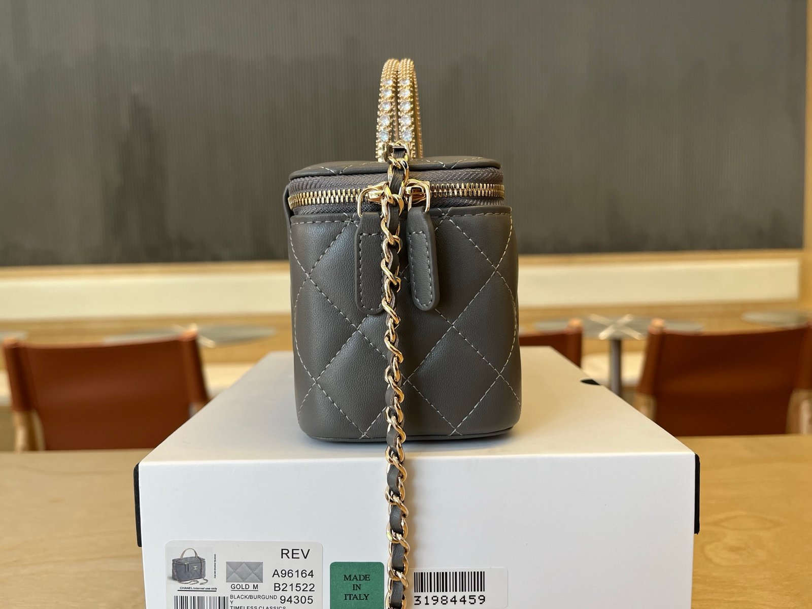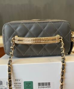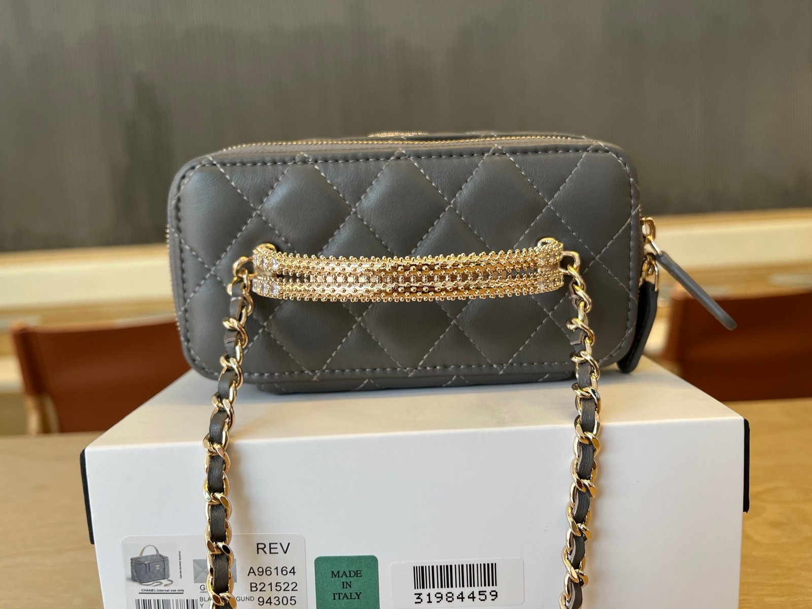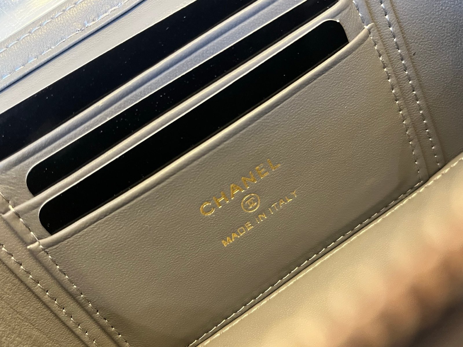 A96164 Chanel 24C Crystal Handle Mini Flap Bag in Lambskin with a Very Special Double C Logo Can Be Carried Handheld, Straddling, or on One Shoulder. It’s Simply Stunning! Dimensions: 17cm