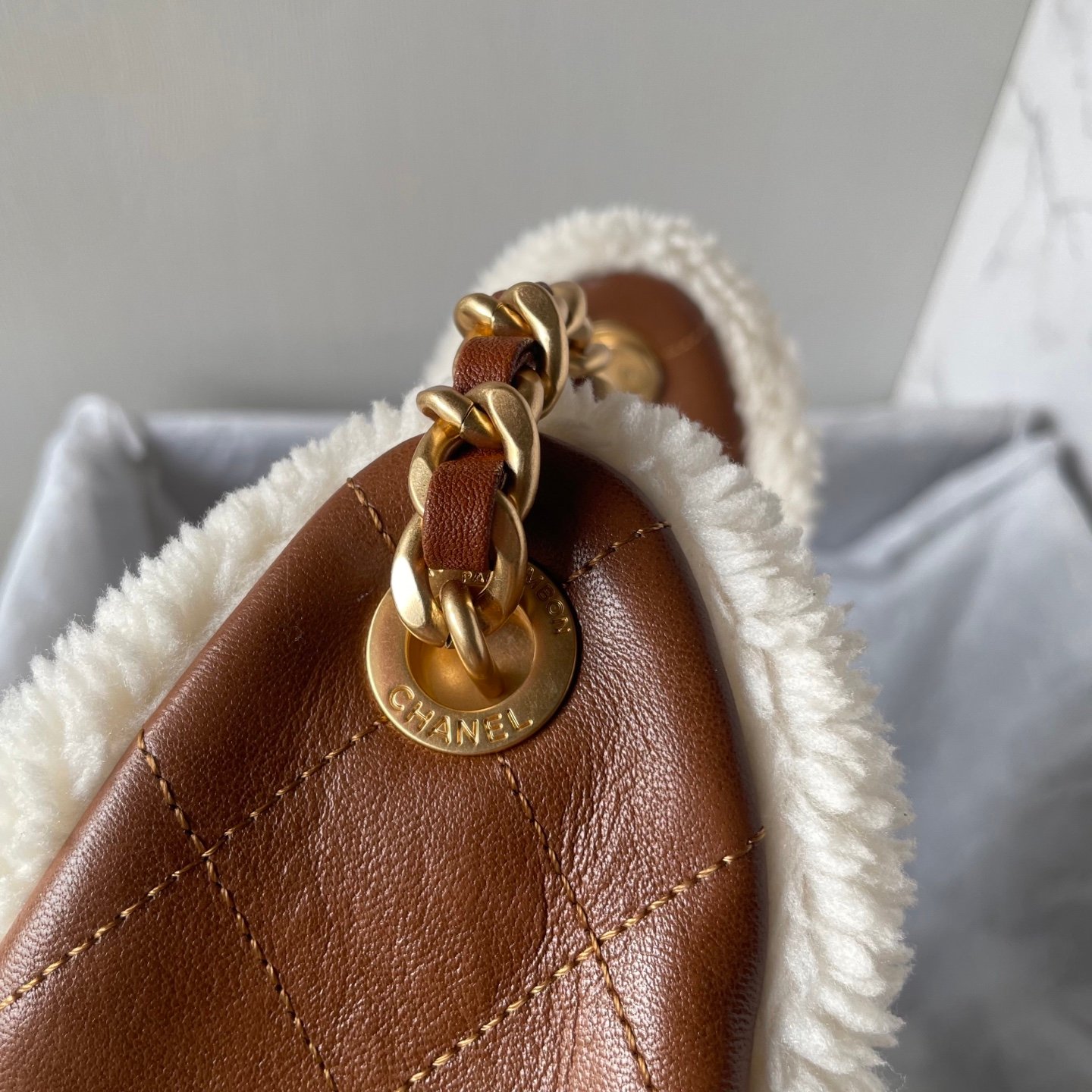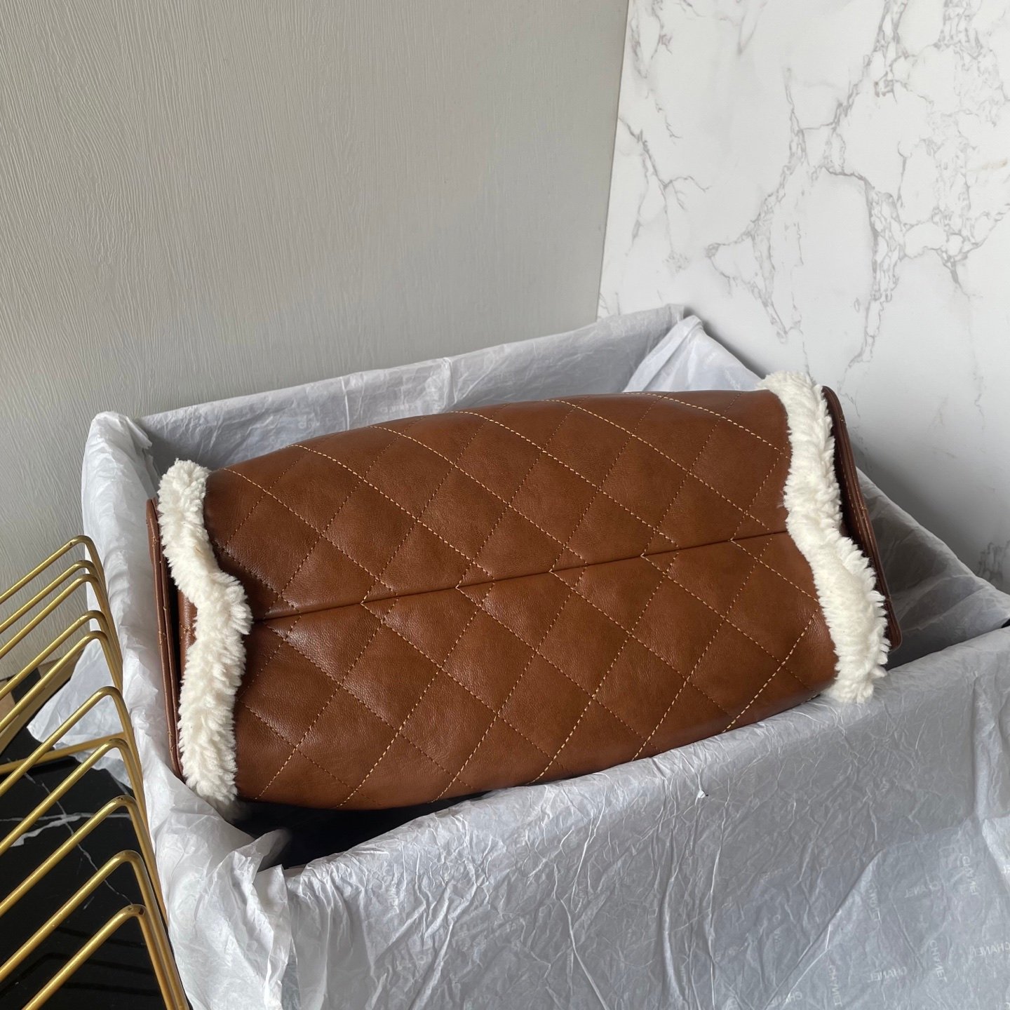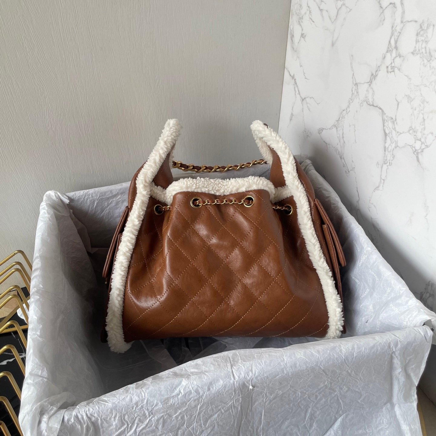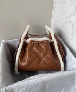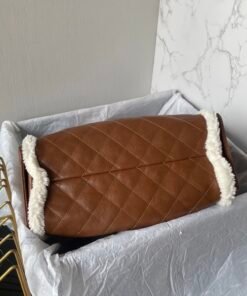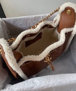 This tote bag is particularly noteworthy for its Italian importedCowhide Material, featuring a decorative trim around the edges in a winter-specific fur. It has a specially designed single strap that looks particularly good and can be adjusted with metallic parts, adding to its elegance. The design includes multiple pockets, providing ample space, and it’s known for its durability and wear resistance.