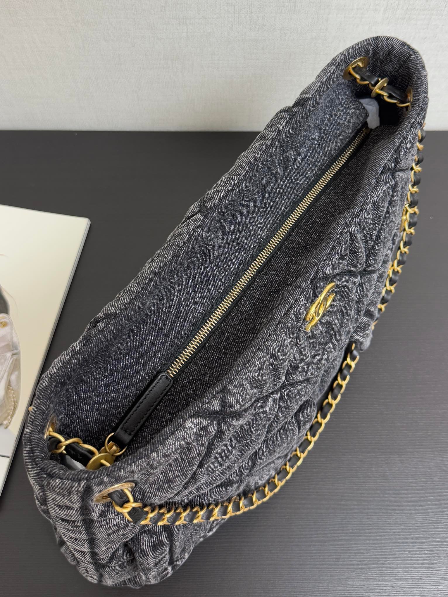 ☪️25K Winter Limited Edition Shopping Bag Full of Sophistication, AS5740 Really Tempts Me. The combination of denim and golden metal is really eye-catching with double pockets and a retro chainPendant. It adds both classic charm and a touch of freshness when paired with the gold double C on the large flip cover. The leather is soft and smooth, exuding elegance and luxury. Very practical, spacious capacity, outstanding visual appeal when worn.