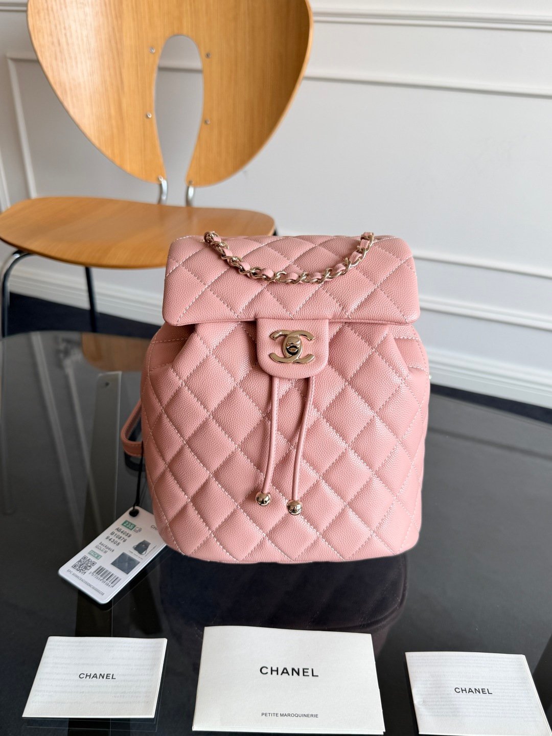 Big Chanel 23s SalzburgCowhide Double-Shoulder BagChanel knows how to do a backpack. AS4059, this one is especially great for those who prefer practicality and durability. The material feels smooth like leather but has an elegant matte finish. It’s simple yet sophisticated design makes it suitable for any age group, making it a versatile choice that can be carried around without feeling outdated. Its spacious interior ensures you can carry all your essentials comfortably. Definitely worth considering if you’re looking for both style and substance in a backpack.