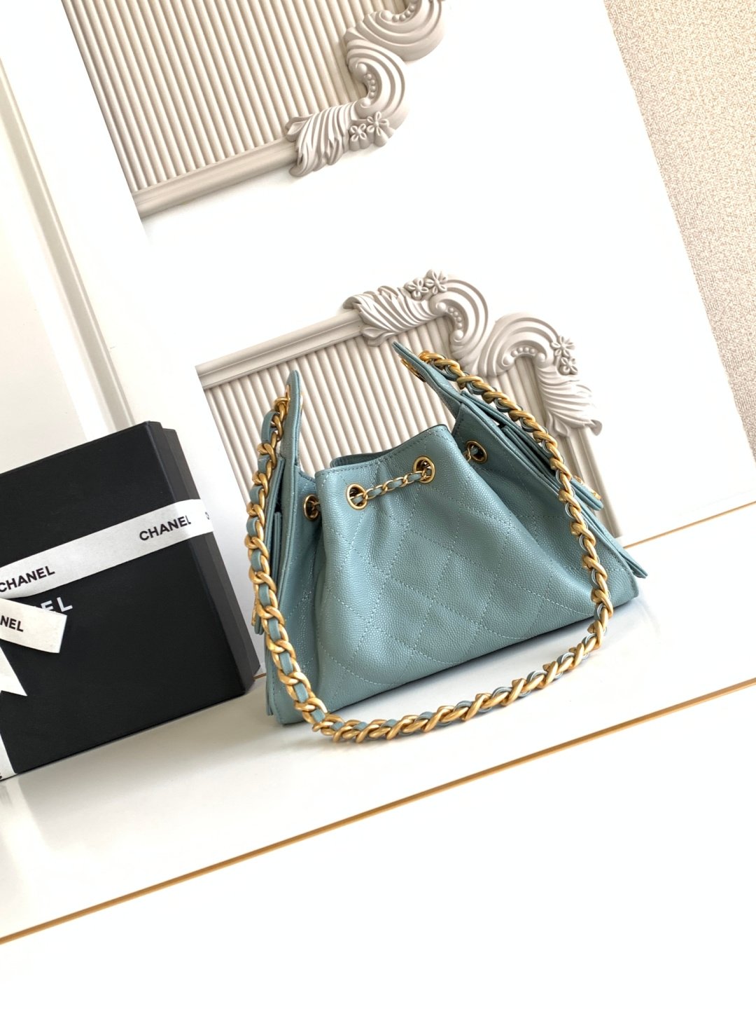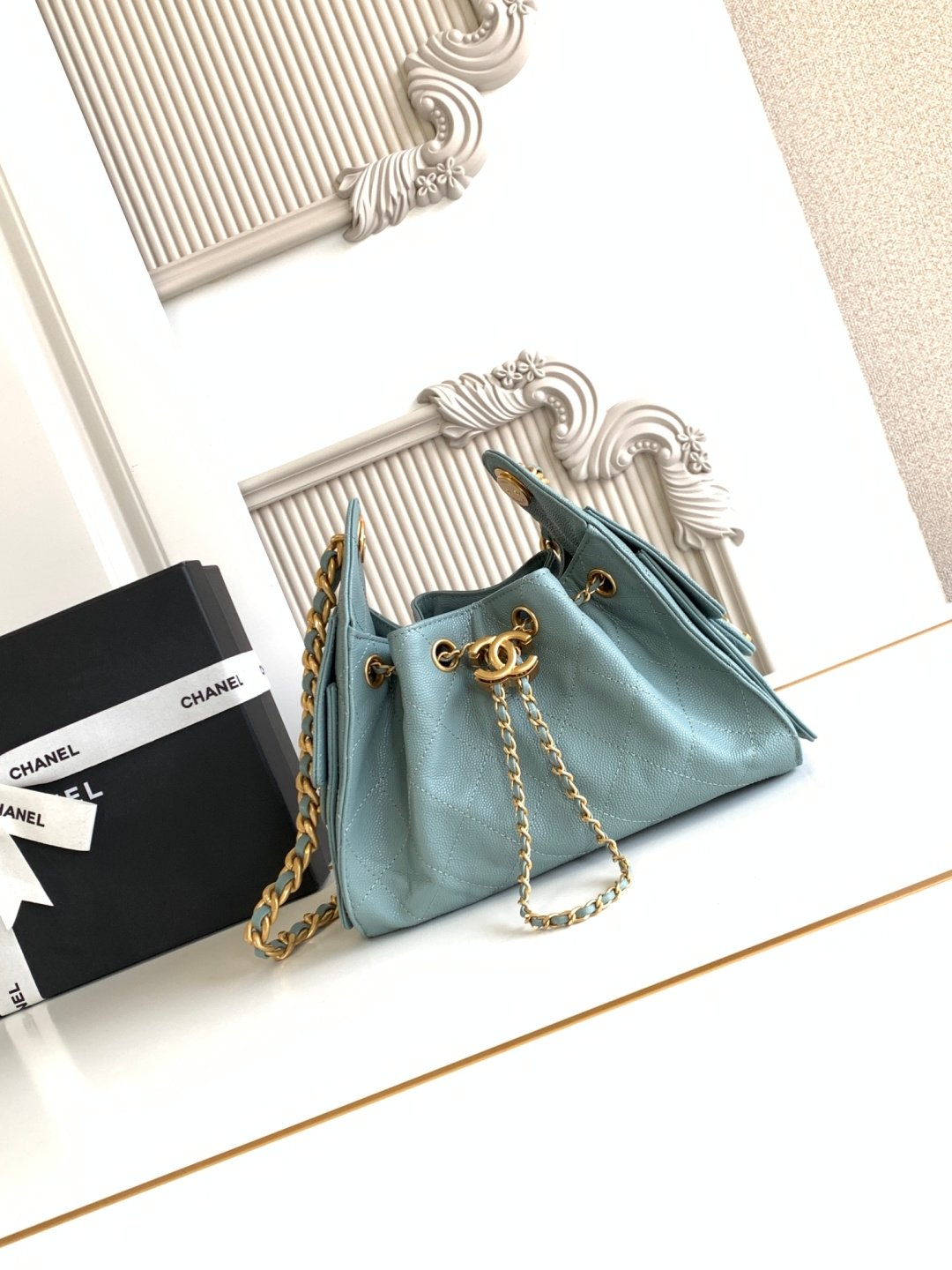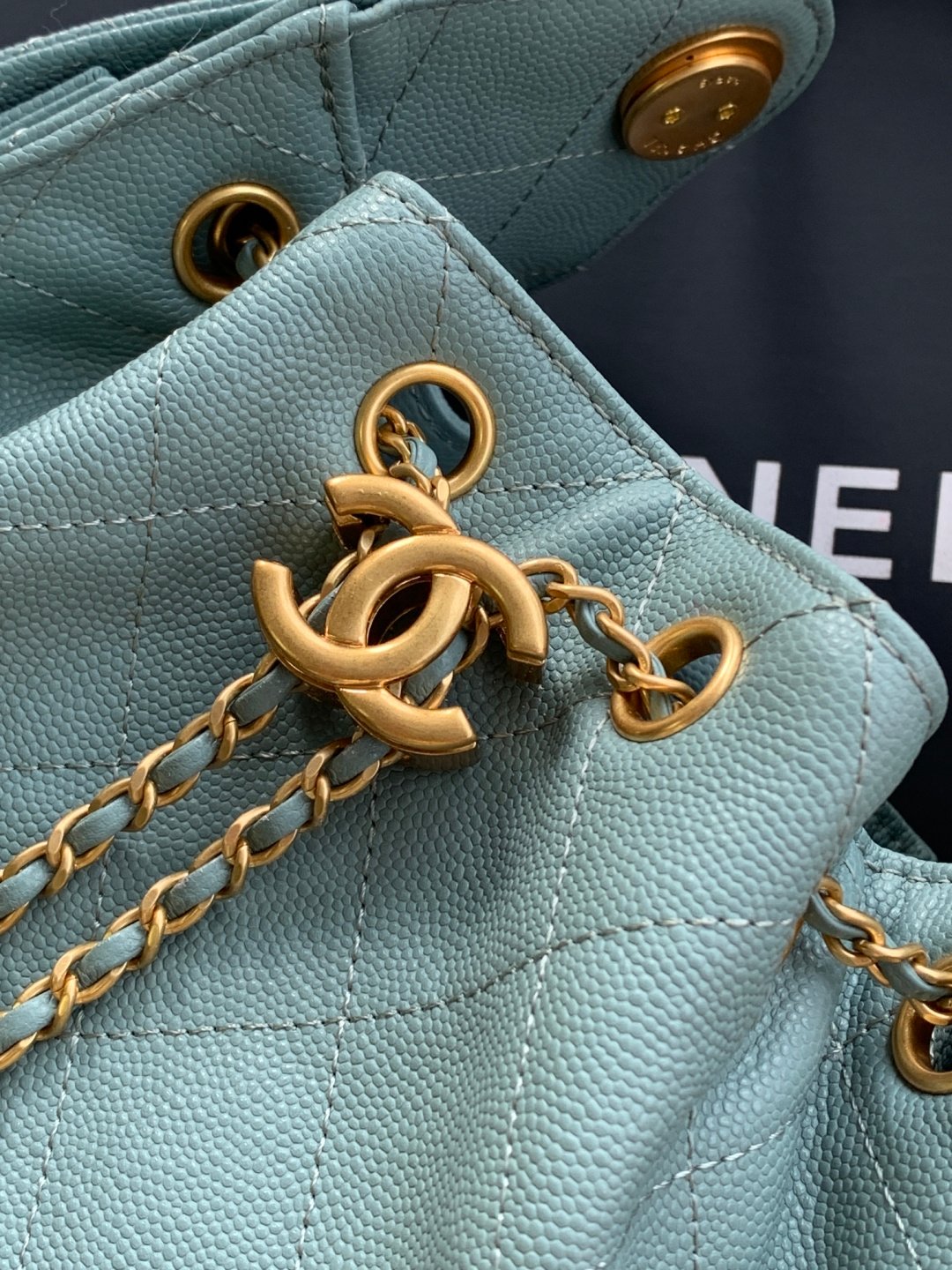AS5631 Chanel 25th Anniversary, another bag named after the year, 25c textured leather hip-hop backpack, Chanel HoboUnderarm Bag, small hippieUnderarm Bag, retro gold button rope bucket bag with diamond pattern and black and gold, classic chain design, high-grade feeling! Must-have for daily trips, exquisite appearance, delicate texture, can easily handle both casual and formal occasions. Size: 20x22x12.5cm