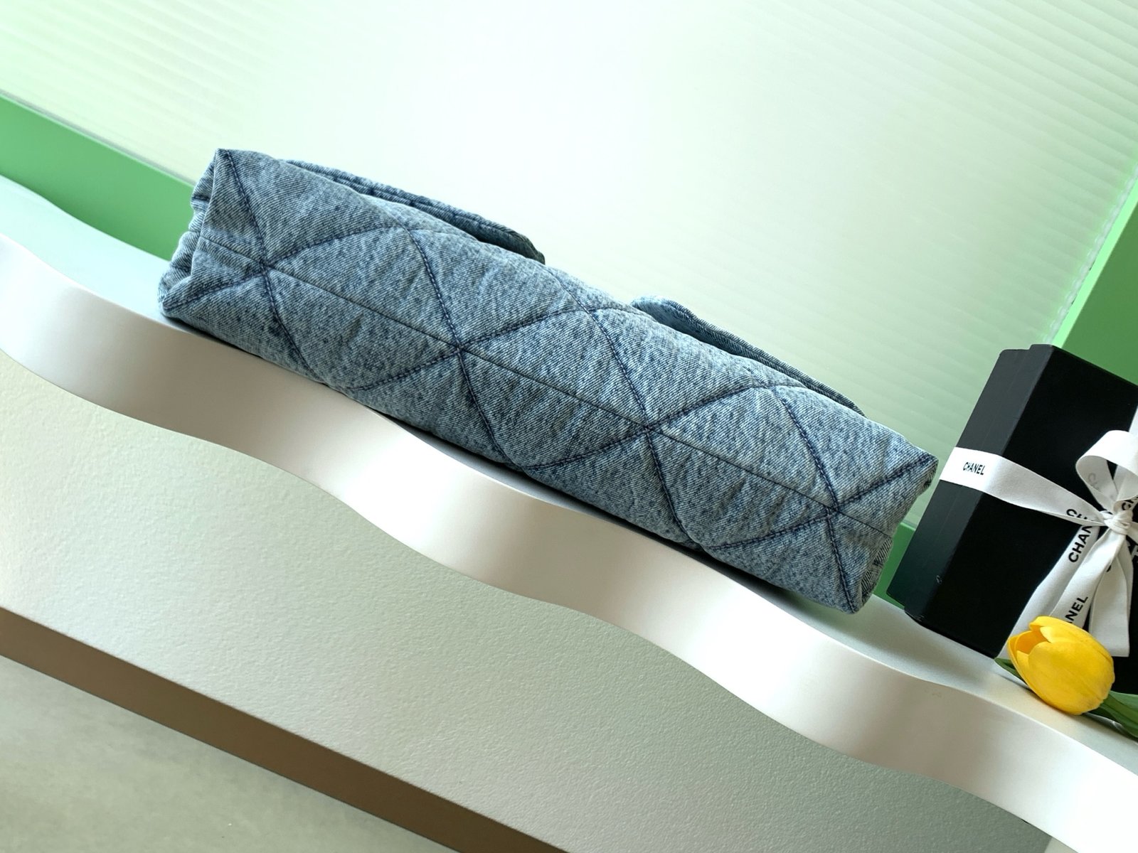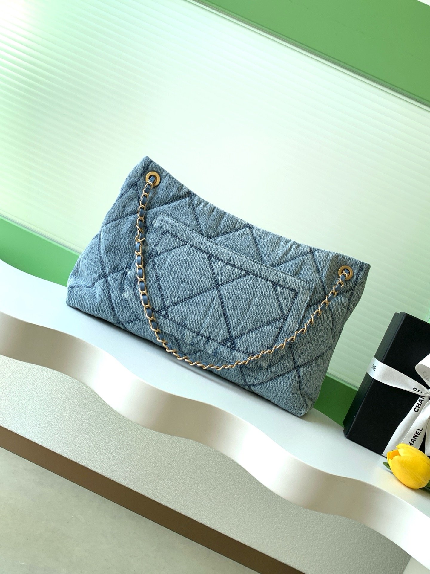 Chanel 25K is truly a Chanel! The denim is really irresistible! Putting the pockets on the front makes the classic diamond pattern more functional.