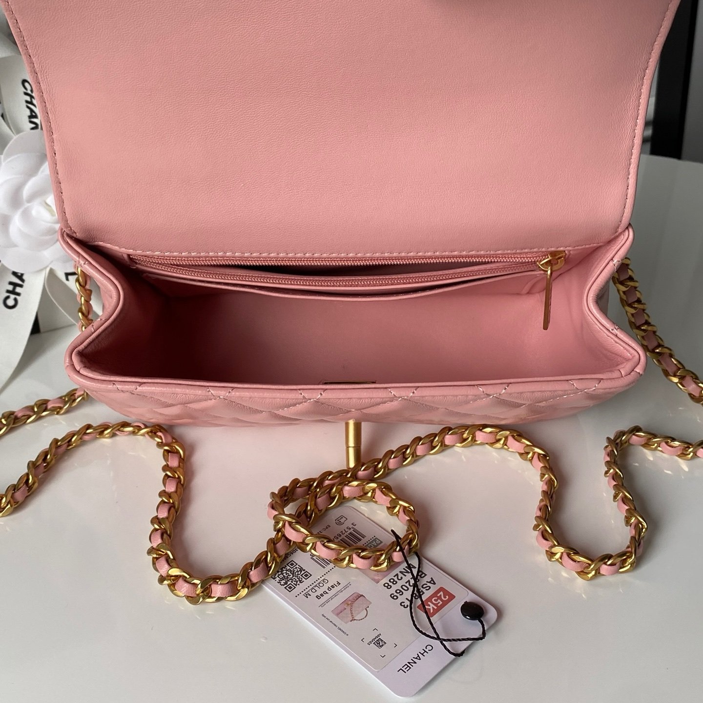 Chanel purse with 25K Tiny diamonds, textured handle design, looks more fashionable. Made of lambskin and metal retro hardware, soft texture, classic design style, versatile and practical. Really exquisite. HighAppearance, falling in love with this classic retro style more and more. It’s just beautiful to carry around. Can match any outfit for a stunning look. This new season’s product is quite surprising. Size: 12.5×19.5×6cm