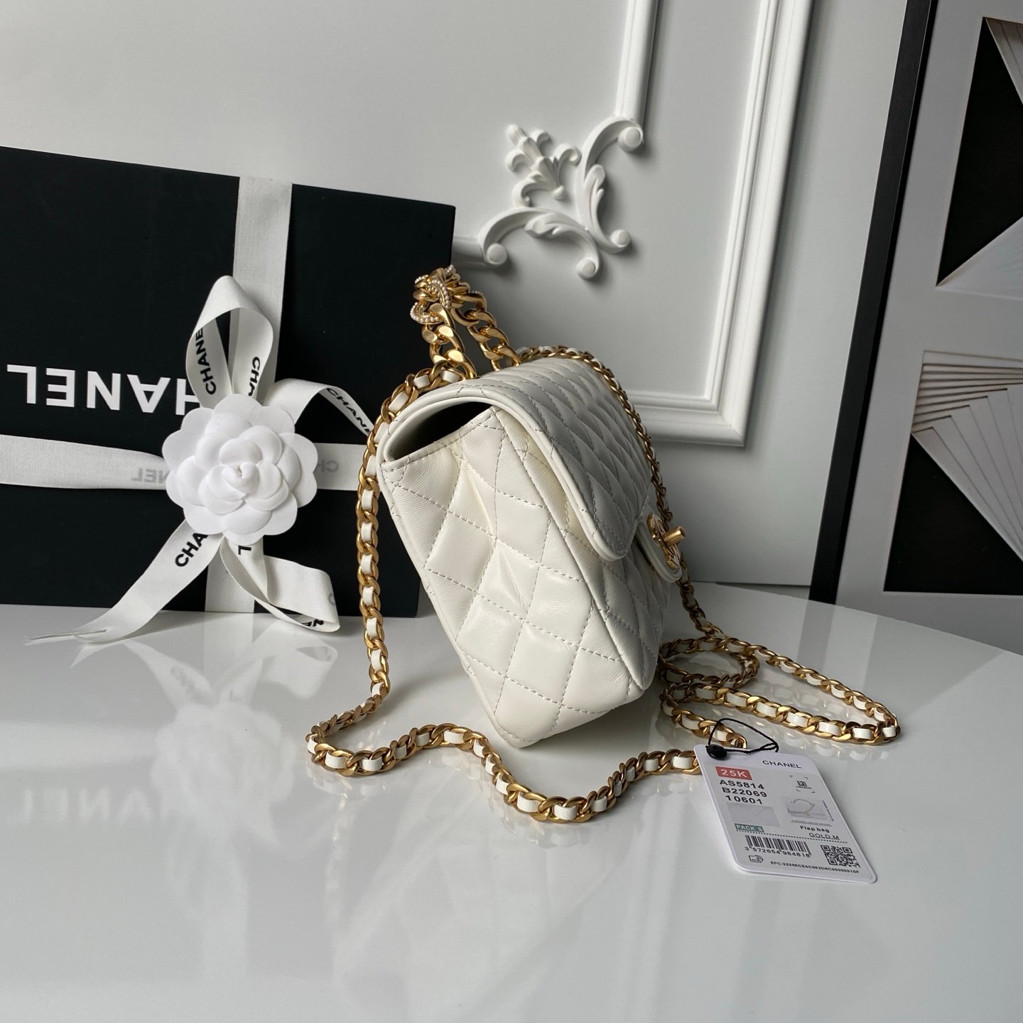 Chanel 25K Diamond Mini Flap, with its exquisite handle design and high-quality materials, exudes a classic yet modern aesthetic. Made from soft lambskin paired with vintage metal hardware, this accessory not only boasts a luxurious feel but also seamlessly complements various outfits. As part of the latest collection, it offers both practicality and style, making it an ideal choice for those who appreciate timeless elegance mixed with contemporary flair. The dimensions are 14×22.5×6 cm.