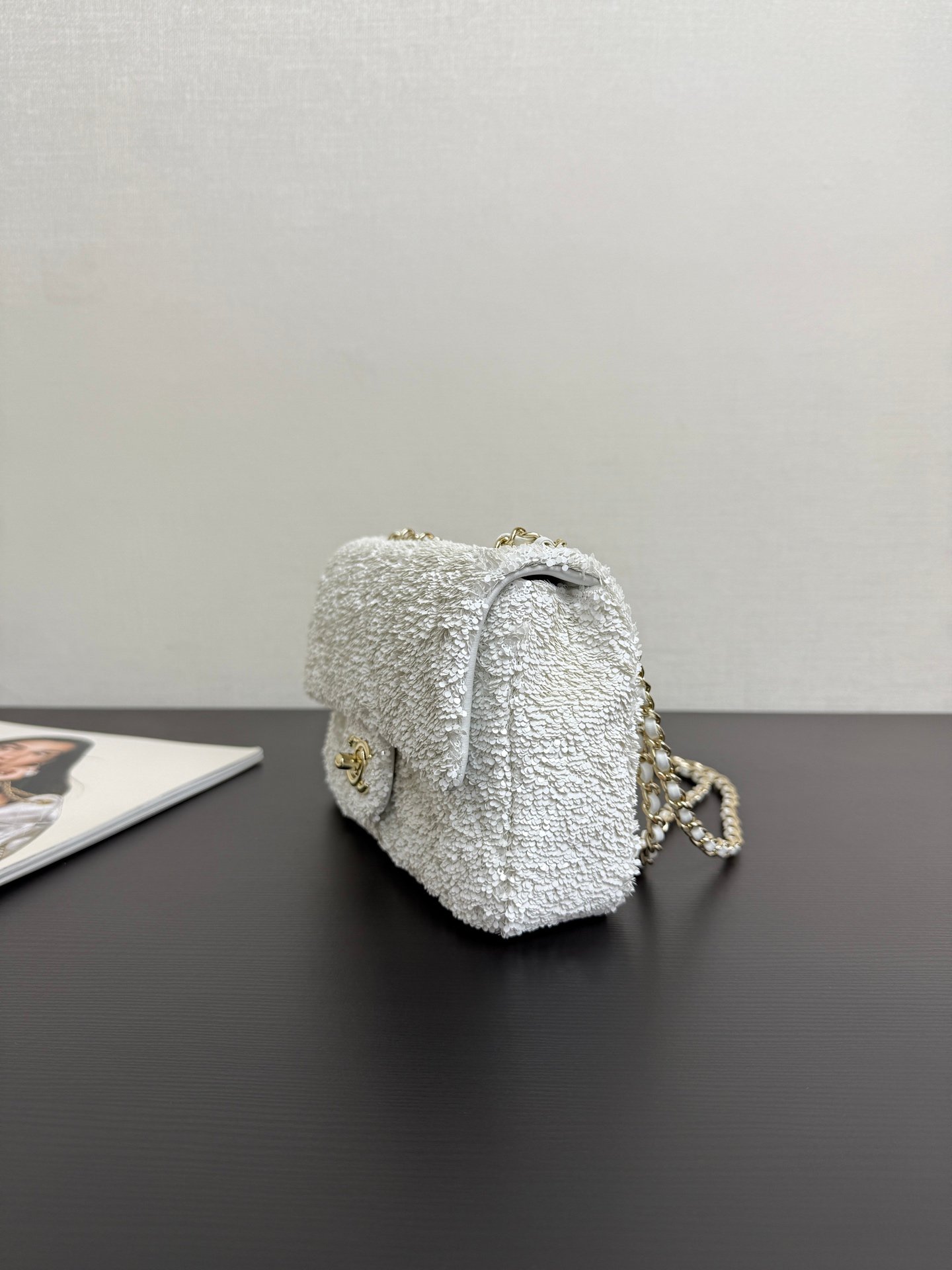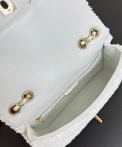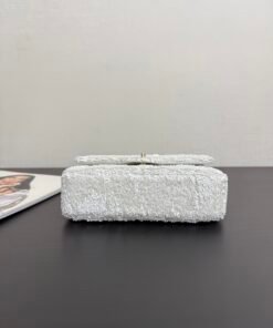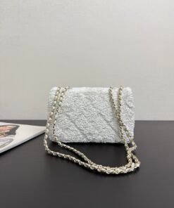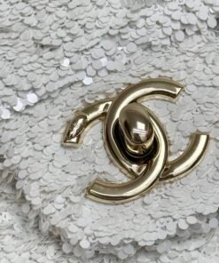 Spot 25B Crystal CF Lid Pouch, Super Rare and Popular with Blinking Pearls. The pearls can create various effects as they move up and down, enhancing its charm significantly. Made of Lambskin inside and Full Steel Hardware, the texture is incredibly smooth. Ideal for evening events too! Dimensions: 21*8*14cm.