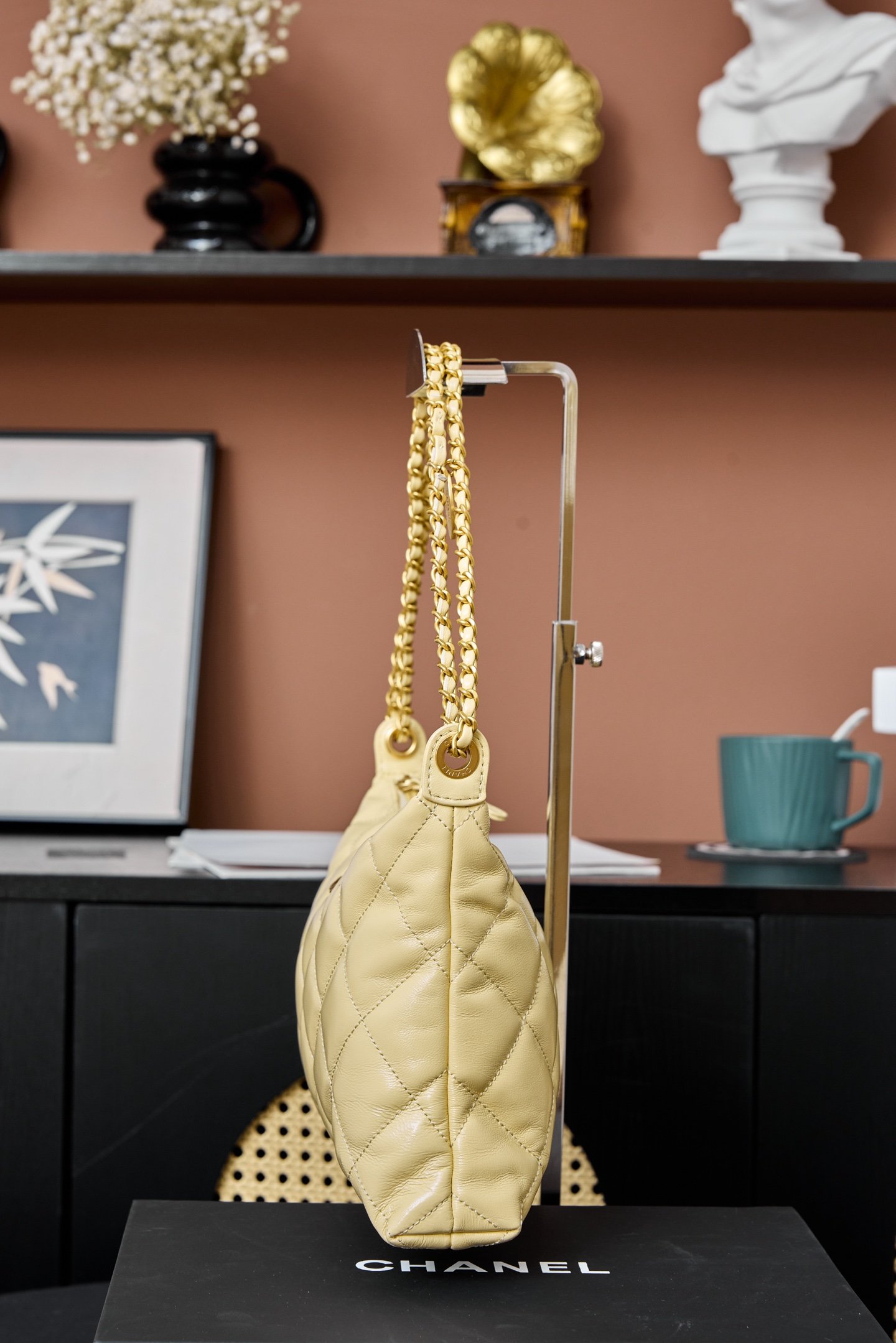 Top-grade money Chane1 25S HoboUnderarm Bag, full of high-end atmosphere. AS5498 model. SuperBeautiful handbag,Very light,Practical and useful。Lambskin with Metal Coin Chain⛓️,Both handheld and cross-body can be used.。Super Attractive . Size: 32X20 X7.