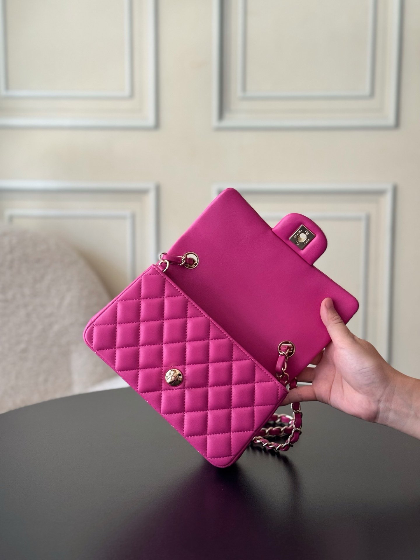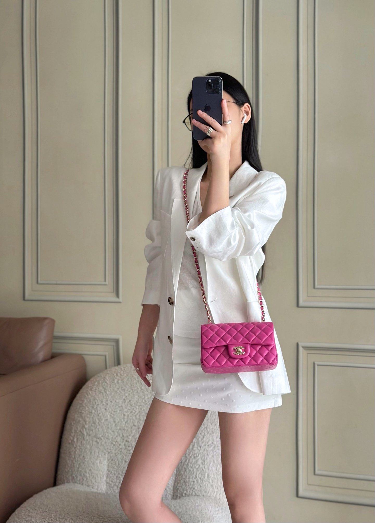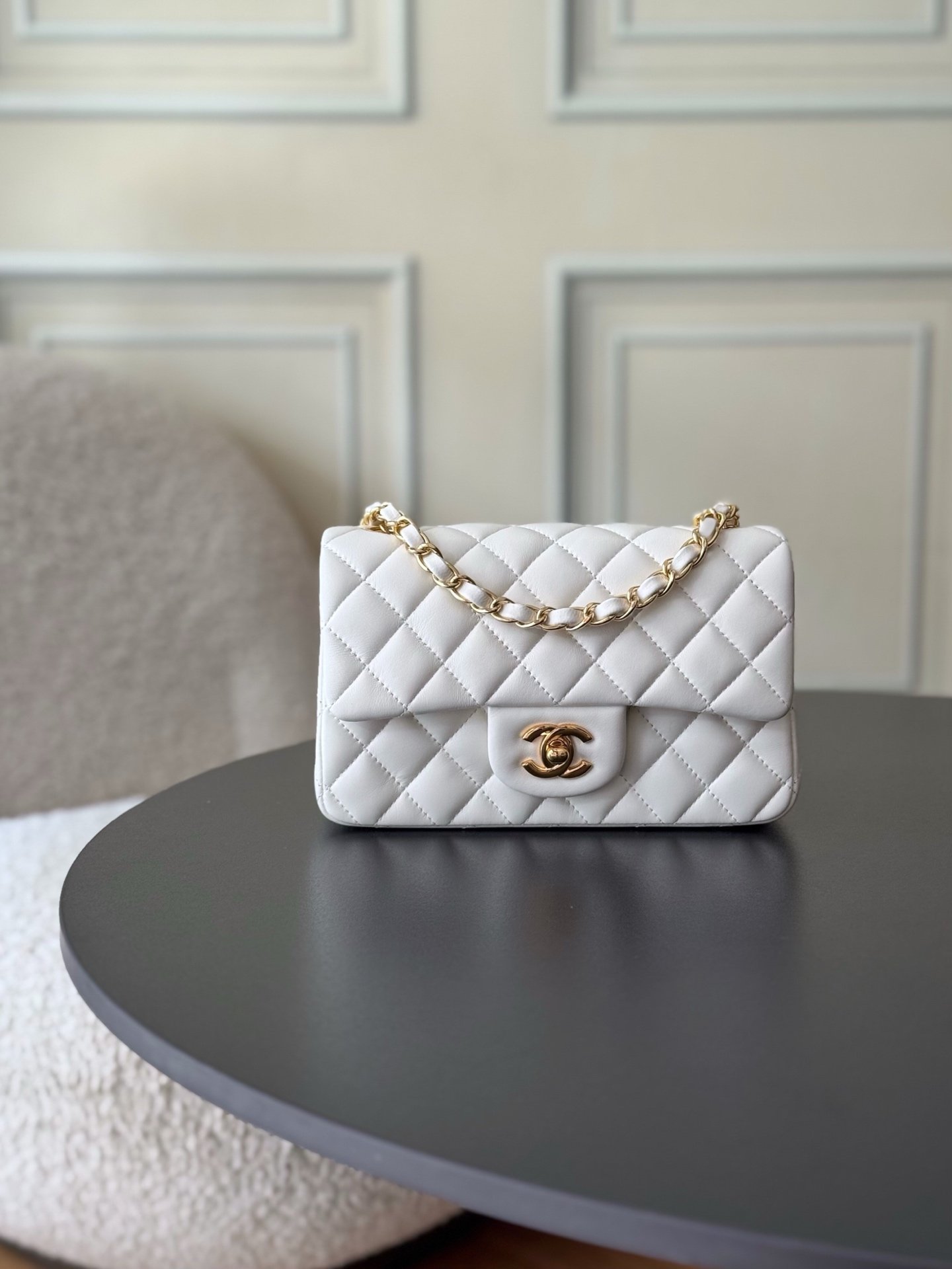 The classic CF has a charm that instantly captivates the heart, embodying elegance wherever it goes. The pure white exudes a graceful and gentle goddess demeanor, complemented by golden buttons that are exquisitely luxurious. It is an ideal choice for those who aspire to own luxury items. The perfect size designed especially for women.