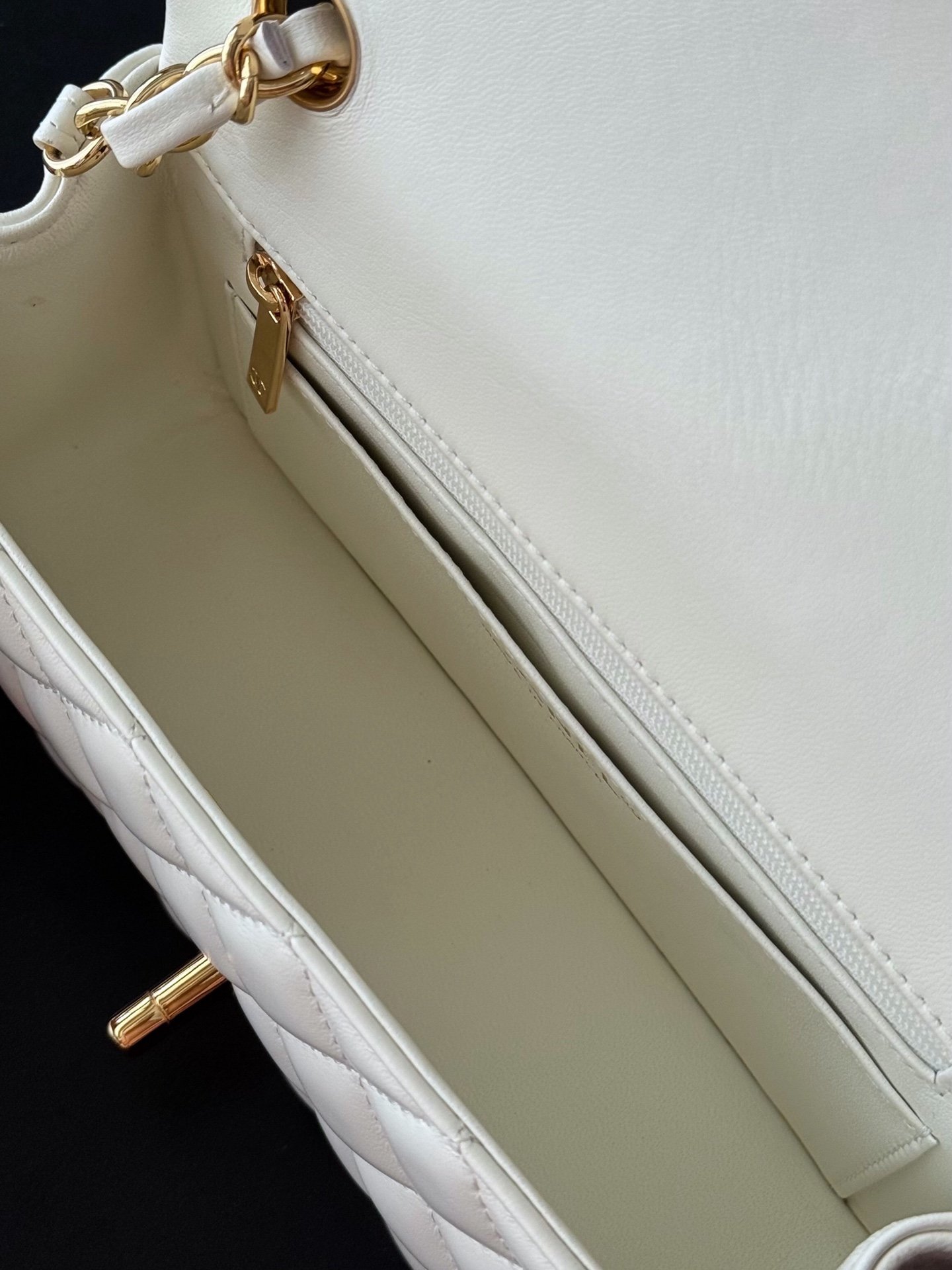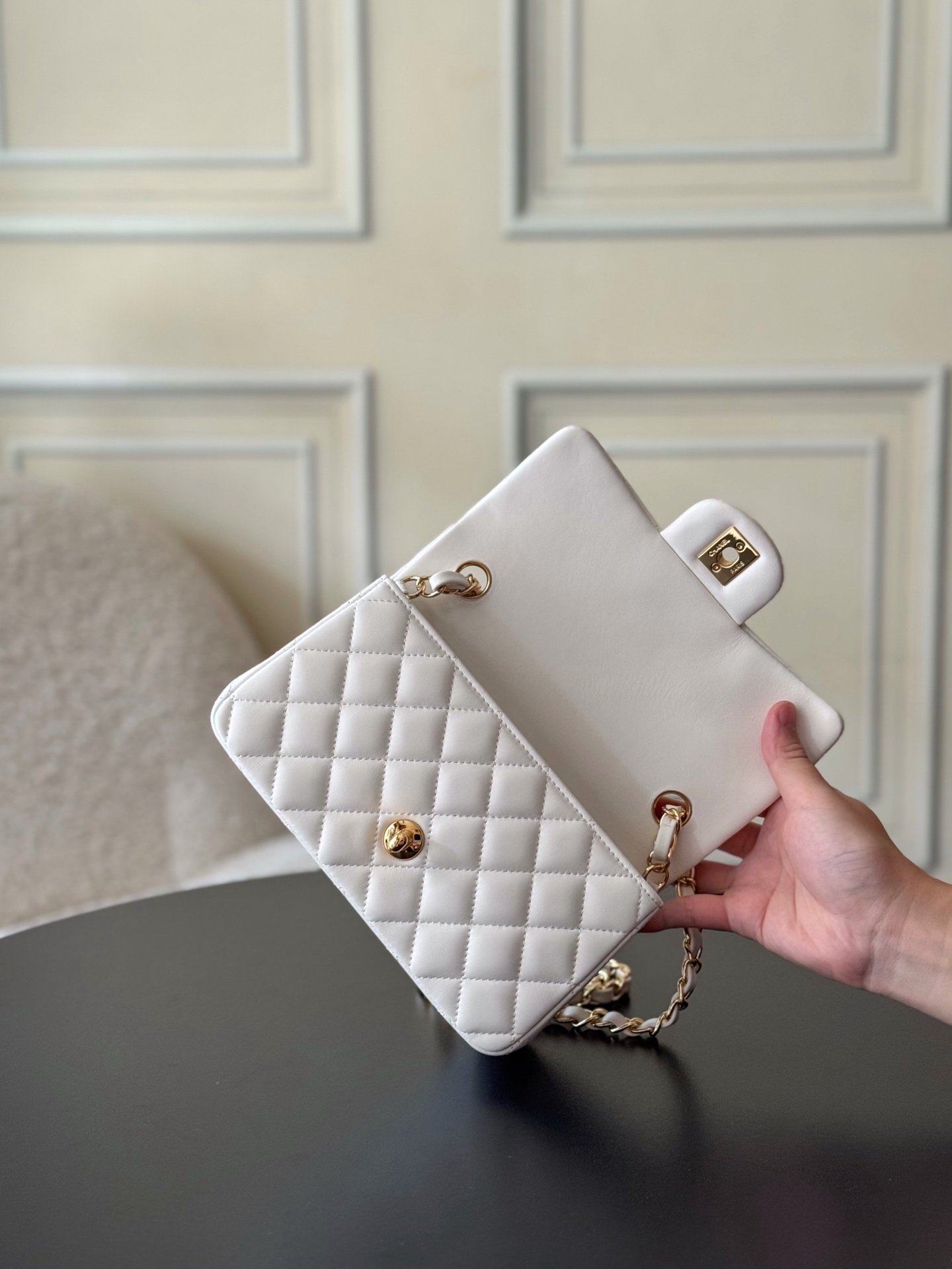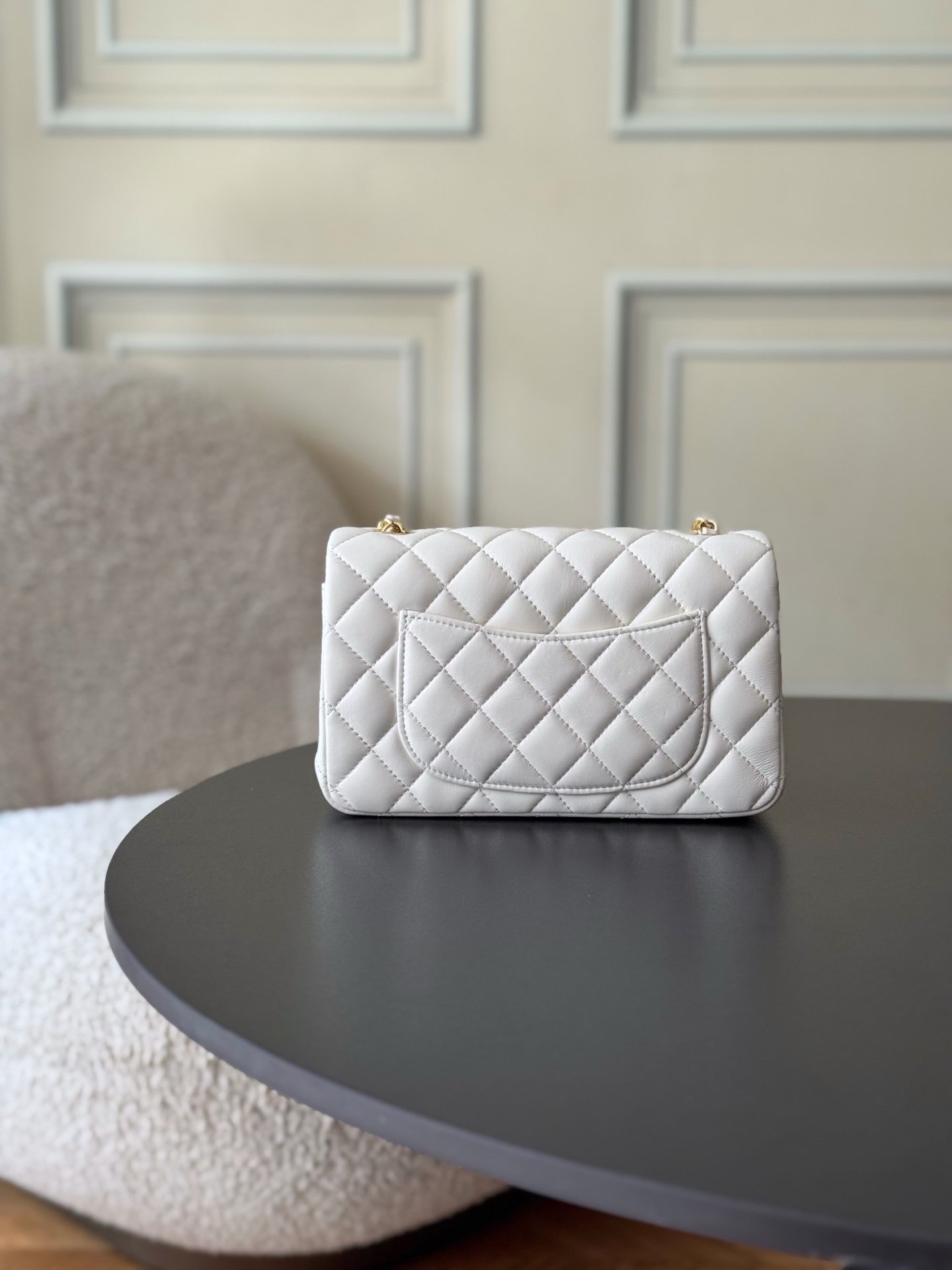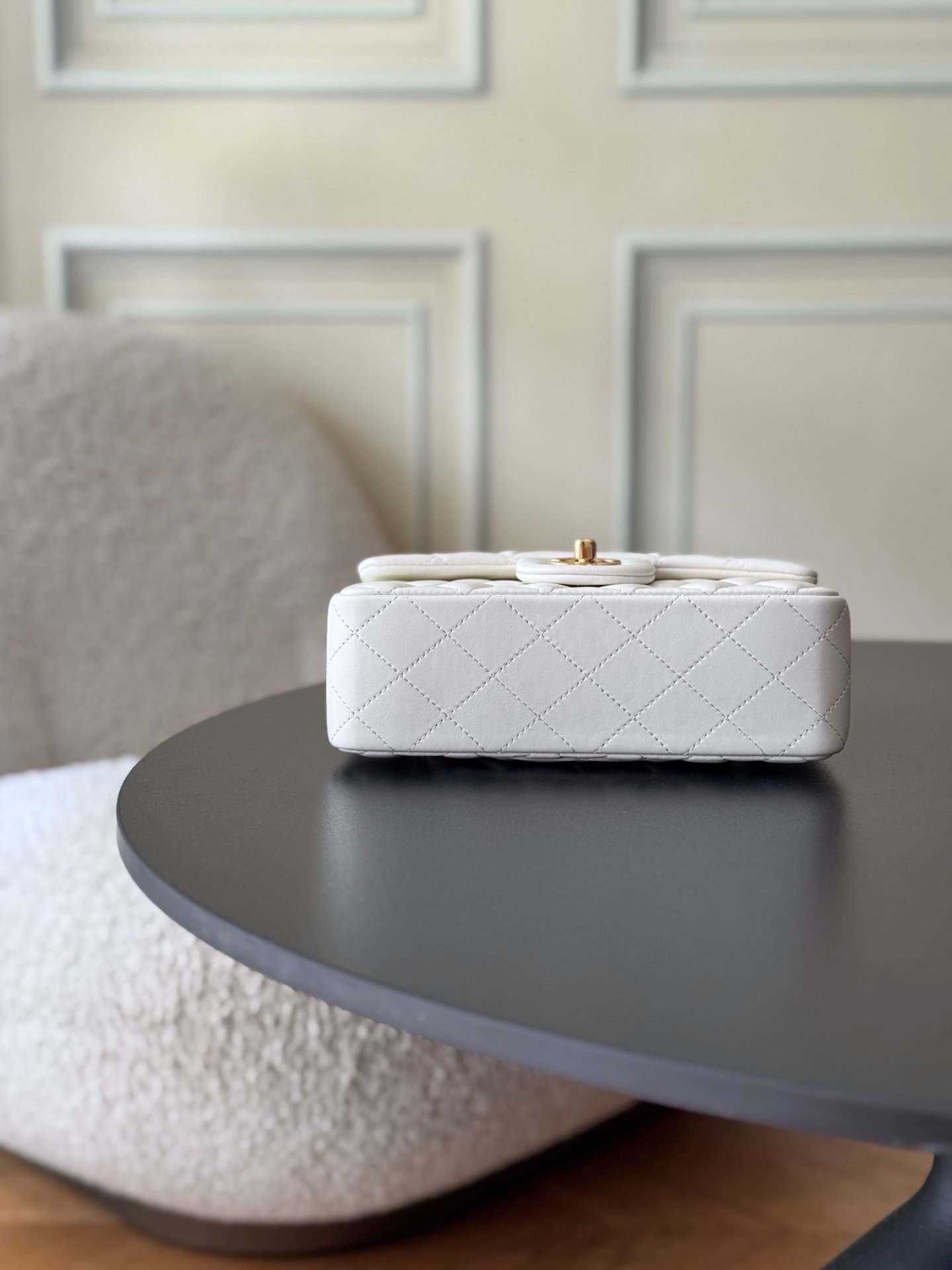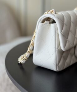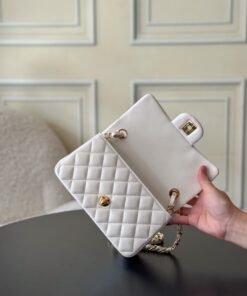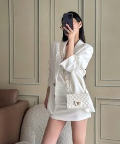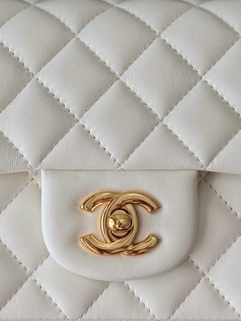 The classic CF has a charm that instantly captivates the heart, embodying elegance wherever it goes. The pure white exudes a graceful and refined demeanor, complemented by golden buttons that are exquisitely luxurious. It is an ideal choice for those who aspire to own luxury items. The perfect size for women, just right in every way.