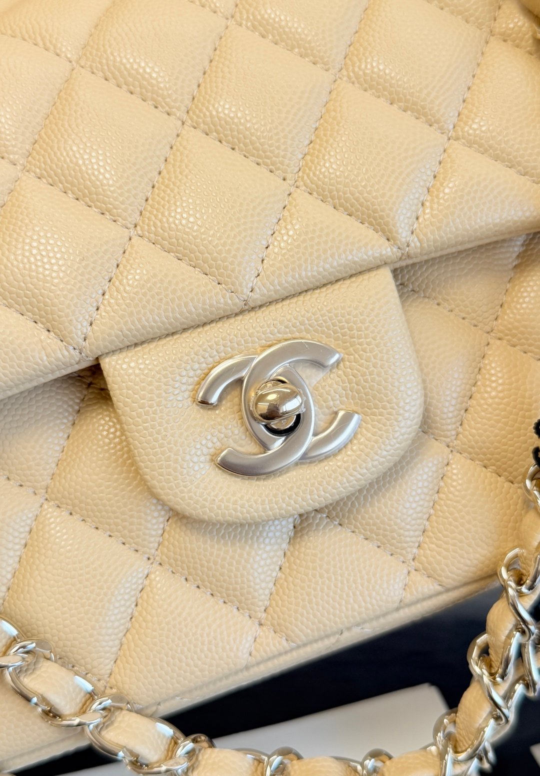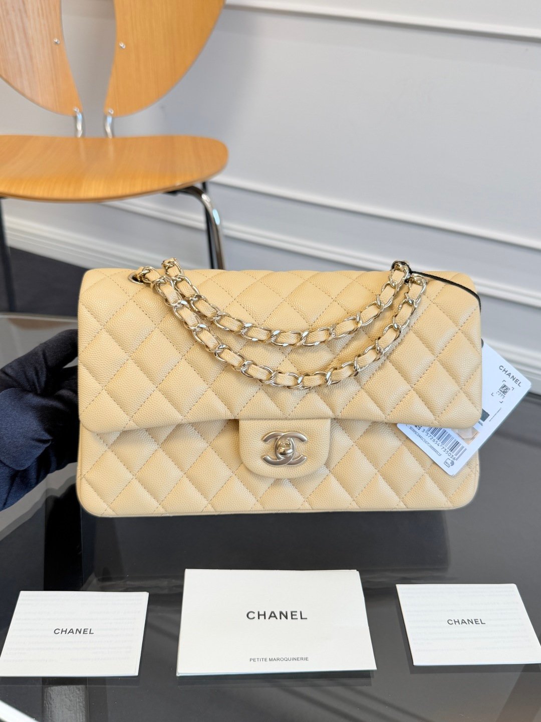 The classic CF has a charm that instantly captivates the heart, becoming an elegant label wherever it goes. The pure white exudes a graceful and gentle demeanor, complemented by golden buttons that are exquisitely luxurious. It is highly regarded as an entry-level luxury item for everyone to own.