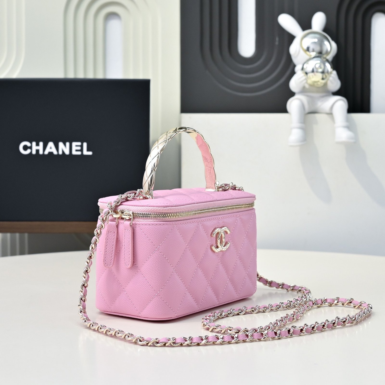 A 25S diamond pattern handle Coco Crush long box, still with caviar leather! Not so delicate. Even a Coco Crush bracelet can cost several thousand dollars; the handle and CC snaps are all in Coco Crush patterns. AS4590, 16 cm.