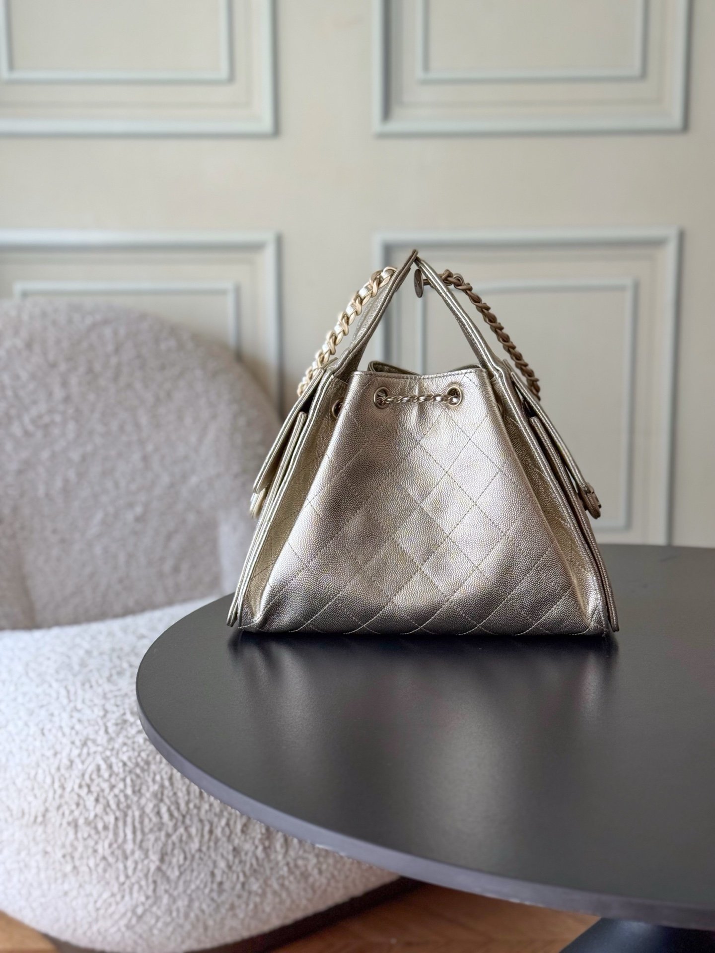 Original leather grade, brand new arrival. Chanel HoboUnderarm Bag Small, Retro Gold Coin Button Drawstring Bucket Bag with Herringbone and Vintage Black Gold,Classic Chain Design,High-grade atmosphere!Daily Commuting Essentials,Appearance is exquisite,Soft texture,Casual wear or can be easily mastered in formal occasions。Unique Hipster Shopping Bag Design,Quite a霸气的设计,Huge capacity easily accommodates daily needs。Hardware:Original Thick Plating40kRetro Gold,Leather:Original Factory ExclusiveAntibaGenuine Calf Leather,Size:50*26*10 cm,Model number:AS5293。