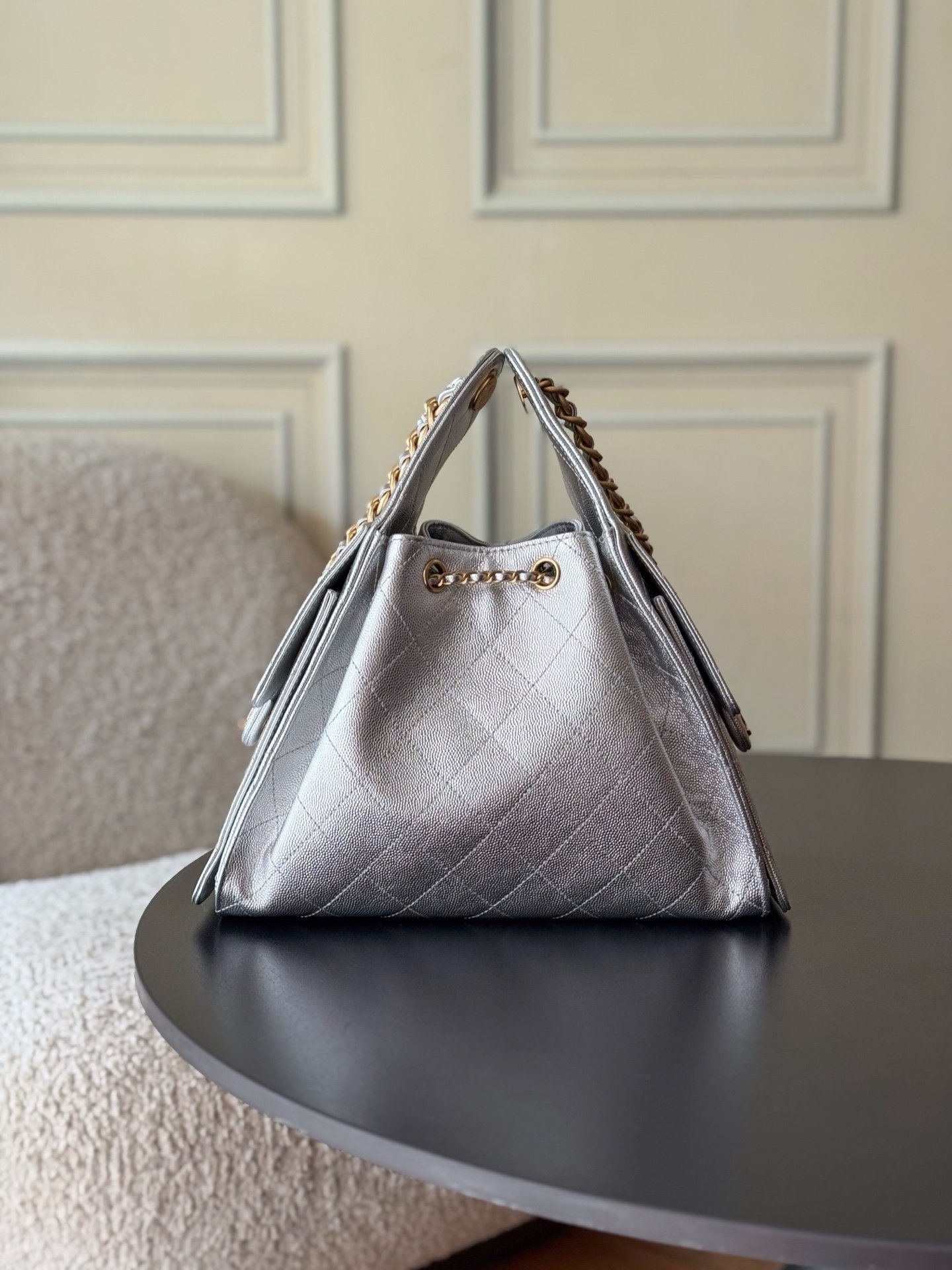 Original leather grade. New arrival from Chanel. 25C early spring, Hippy shopping bag in small size, purchased at a discount of ¥9000. The mostHotChanel leather hip-hop tote bag for the annual 25C, featuring a retro gold button pull cord bucket bag with diamond grid and vintage black gold. Classic chain design, high-end feel! Perfect for daily trips, elegant appearance and delicate texture, can easily match both casual and formal occasions. Popular at fashion shows, unique hippy shopping bag style, quitePowerful aura,large capacity to hold all your daily needs.