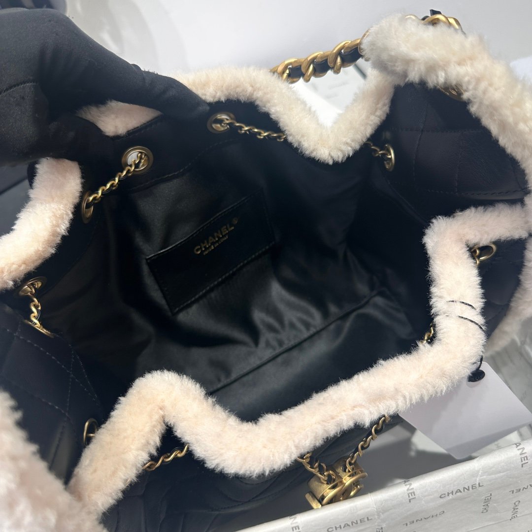 Retro Gold Button Pull Cord Bucket Bag with Diamond Pattern + Retro Black Gold