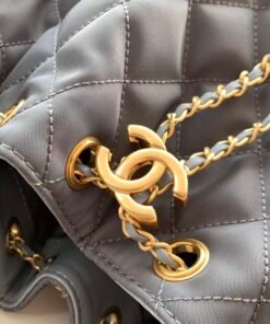 AS5293CHANEL 25th Anniversary Edition, another bag named after the year, features a hipster backpack design with a Chanel hobo silhouette and a flap that opens under the arm. It comes in a small size, reminiscent of a vintage coin purse with drawstrings and a water bucket shape adorned with gold retro buttons and quilted diamond patterns. The classic chain strap adds an elegant touch to this bag. Perfect for daily use or formal occasions, it boasts a beautiful appearance and delicate texture that can be easily paired with both casual and formal outfits. Dimensions: 30x26x14cm.