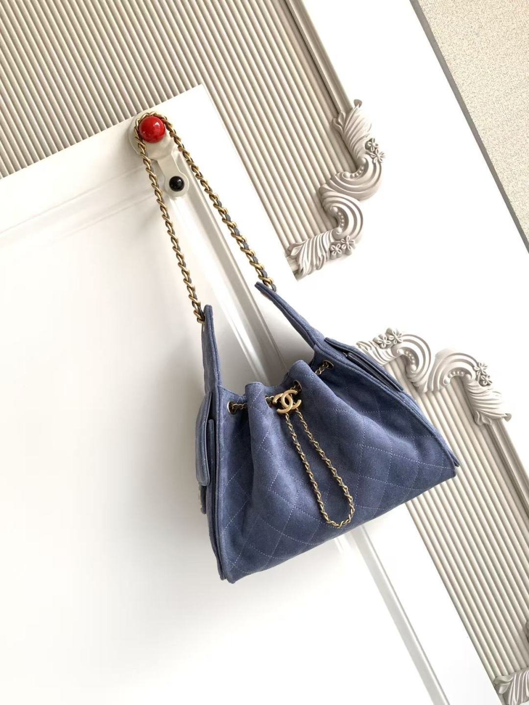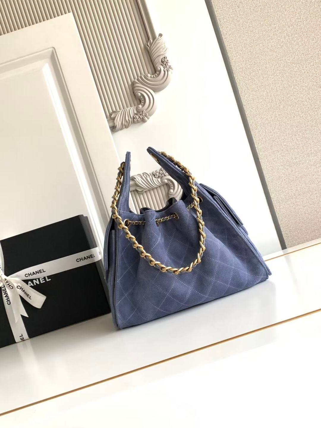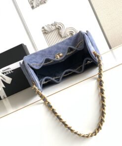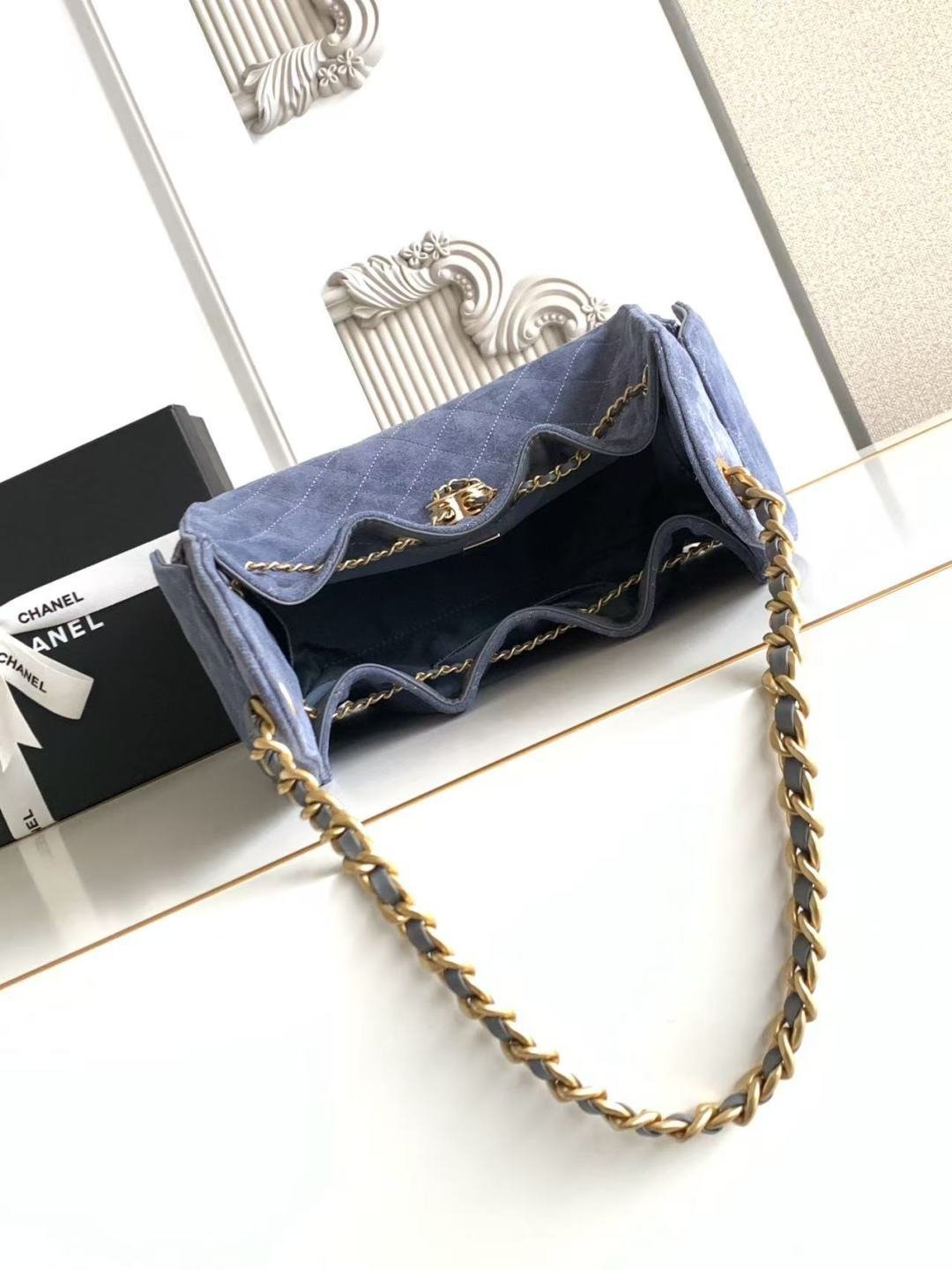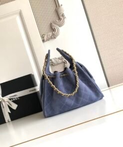 AS5293CHANEL 25th Anniversary Hipster Hobo Bag in Suede, a stylish and elegant handbag with retro gold button detail and black and gold diamond pattern. It features a classic chain design for added sophistication. Perfect for both casual and formal occasions, it’s compact size of 30x26x14cm makes it an ideal everyday accessory.