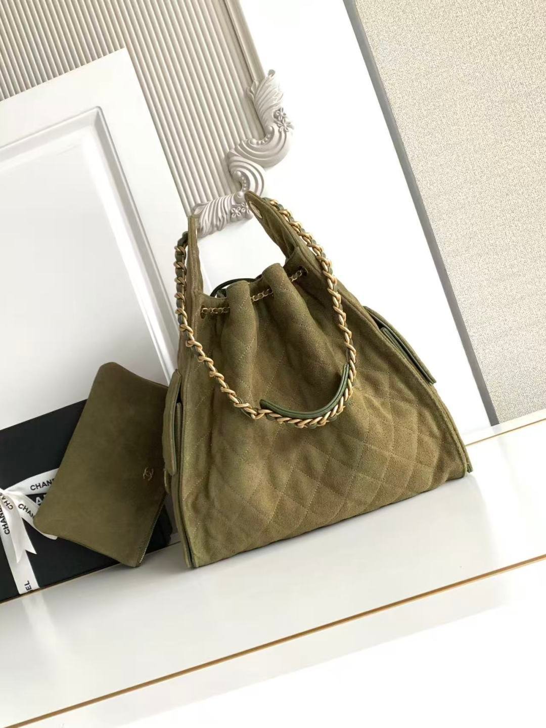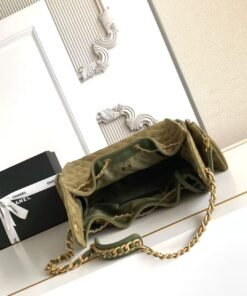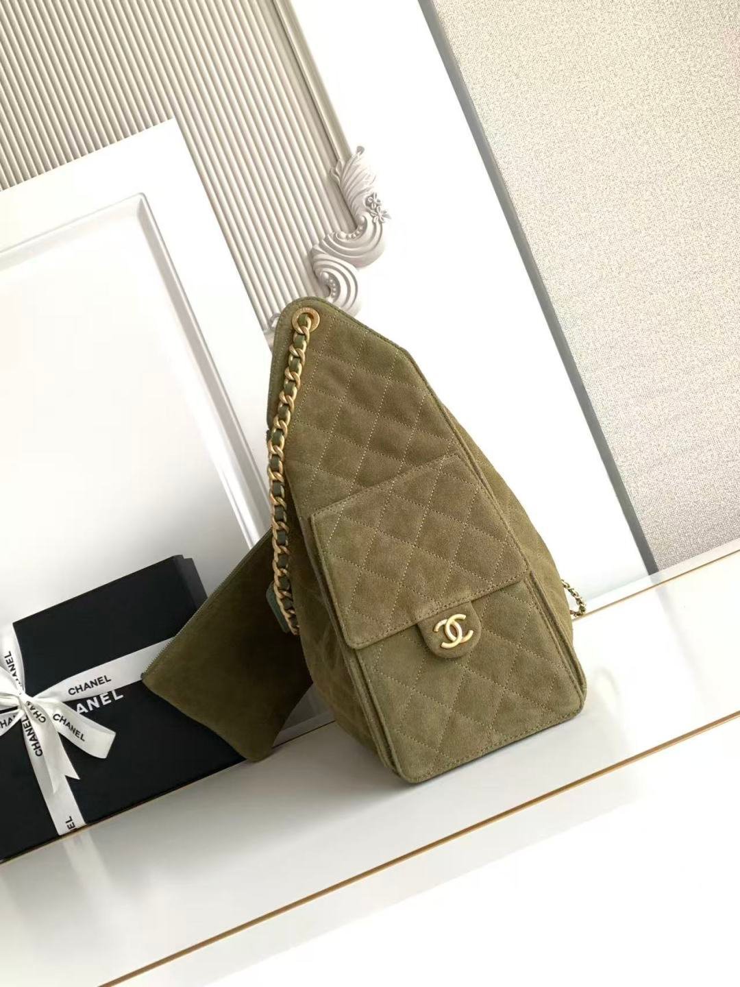 AS5311 CHANEL 25th Anniversary Hipster Hobo Bag in Saffiano Leather with Gold Retro Button and Chain Strap, featuring a classic chain design, high-end feel. Perfect for daily use or formal occasions, it fits well in both casual and elegant settings. Dimensions: 40x30x15cm.