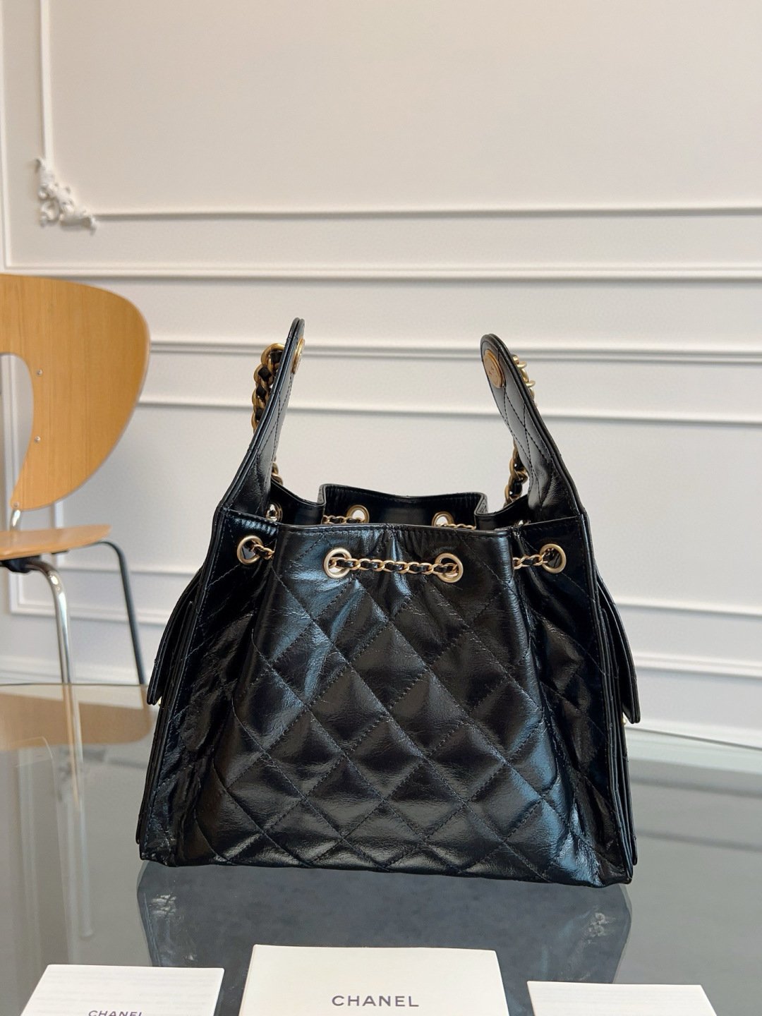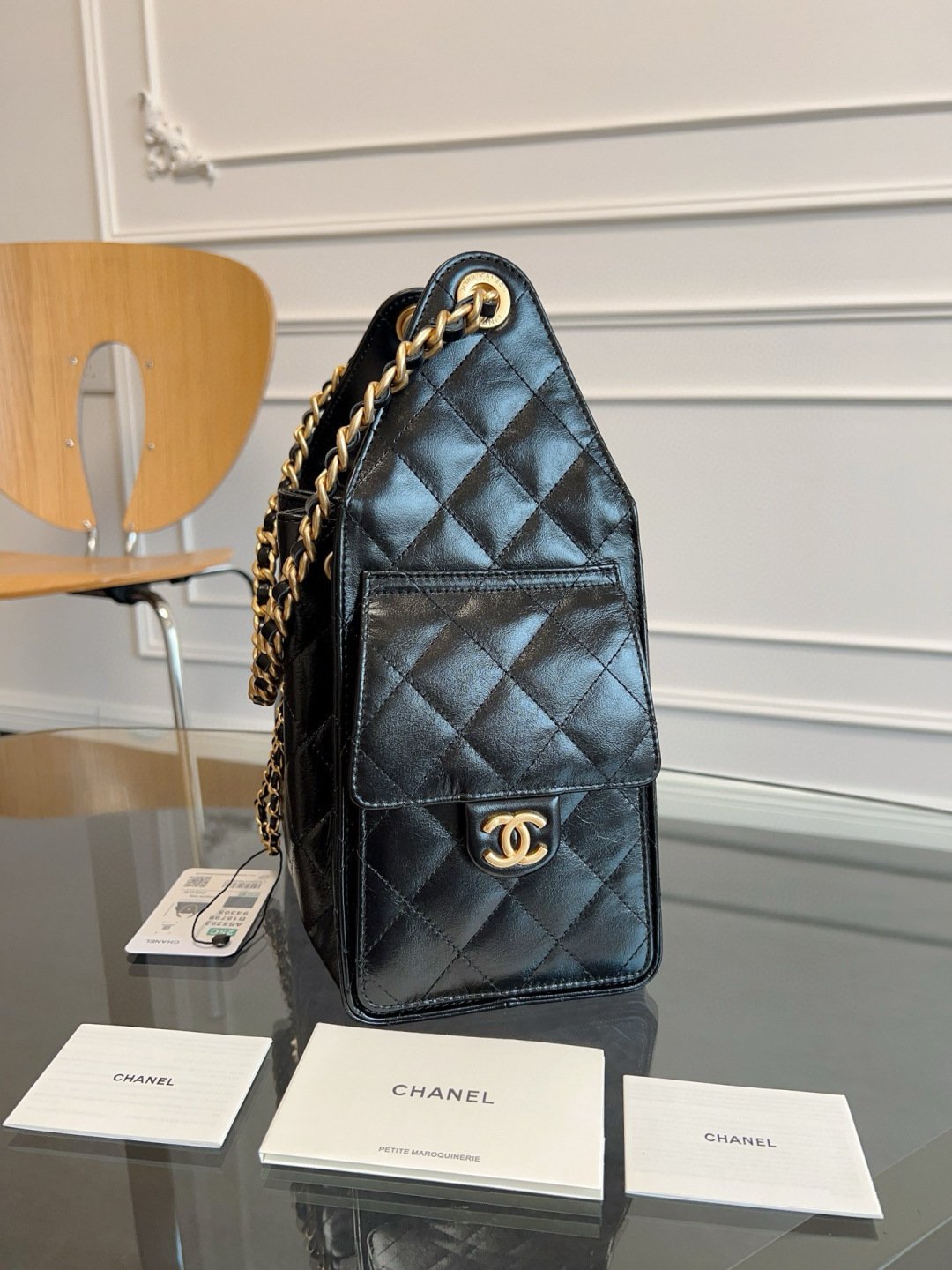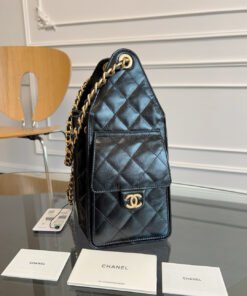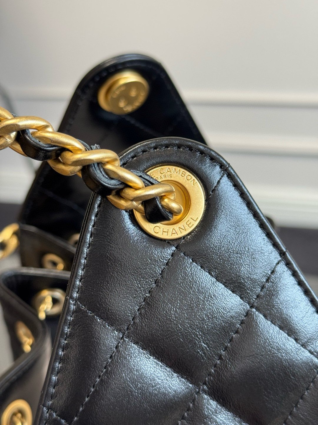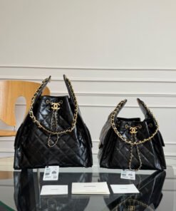 Chane1 25C Stylish HOBO BAG Hip Bag AS5293 Special Design Style GlossyCowhide with golden metal Extremely Good Match Feels Much Better Than The Picture Capacity Is Very Impressive Has Double C Logo on Both Sides Elegant Retro Parisian Female Icon Super Like Size: 30×26×14cm