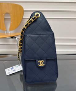 New Color Sapphire Chane1 25C Stylish HOBO BAG Hip Bag AS5293 Special Design Style Caviar with Golden Metal Super Good Match Feels Much Better Than the Picture Capacity Is Very Impressive There Are Double C Logo on Both Sides Elegant Retro Parisian Female Icon Super Like Size: 30×26×14cm