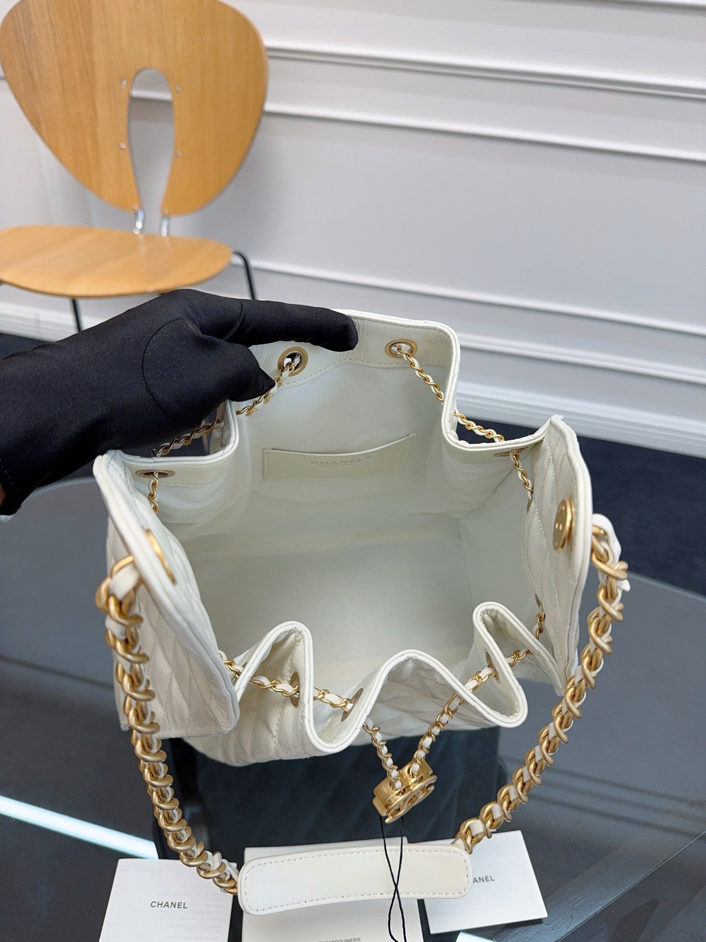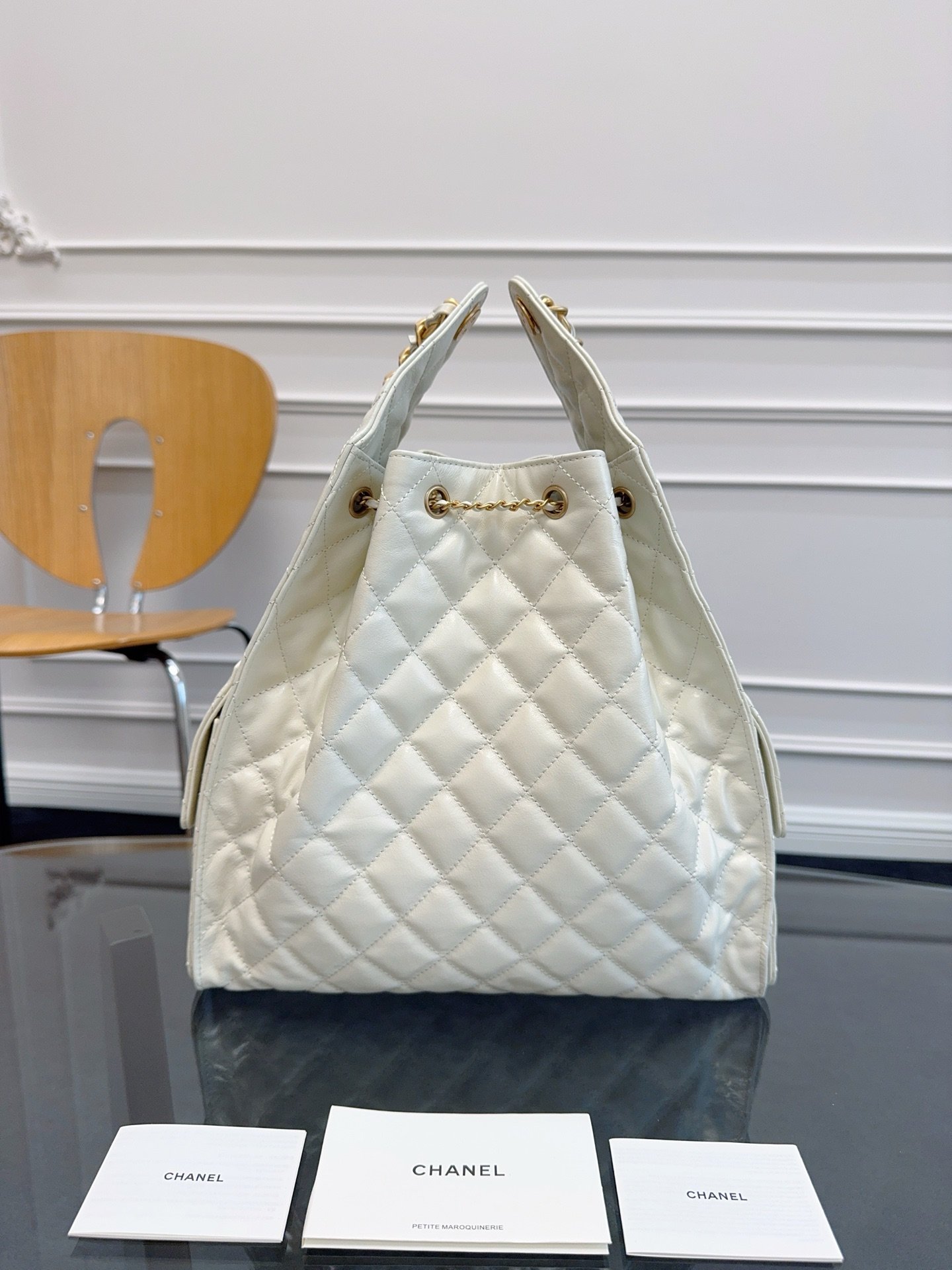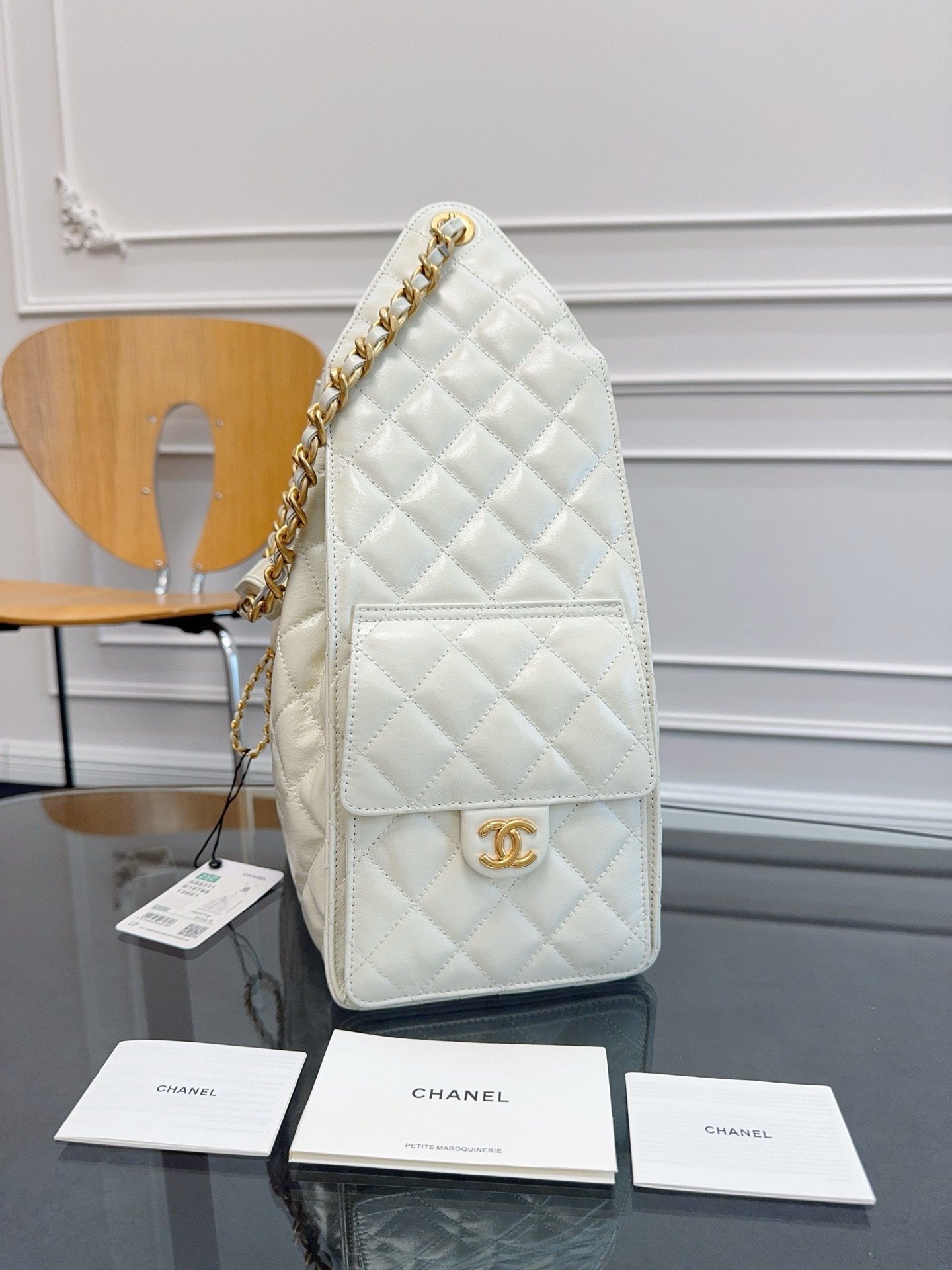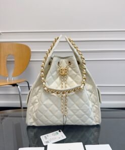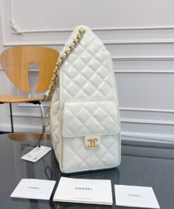 Chane1 25C stylish HOBO BAG hippie bag AS5311 unique design style glossyCowhide with golden metal very goodThe fit is much better than in the picture, and the capacity is very impressive. There are pockets on both sides as well.C logo elegant retro Paris femaleModel super like size: 40×30×15cm