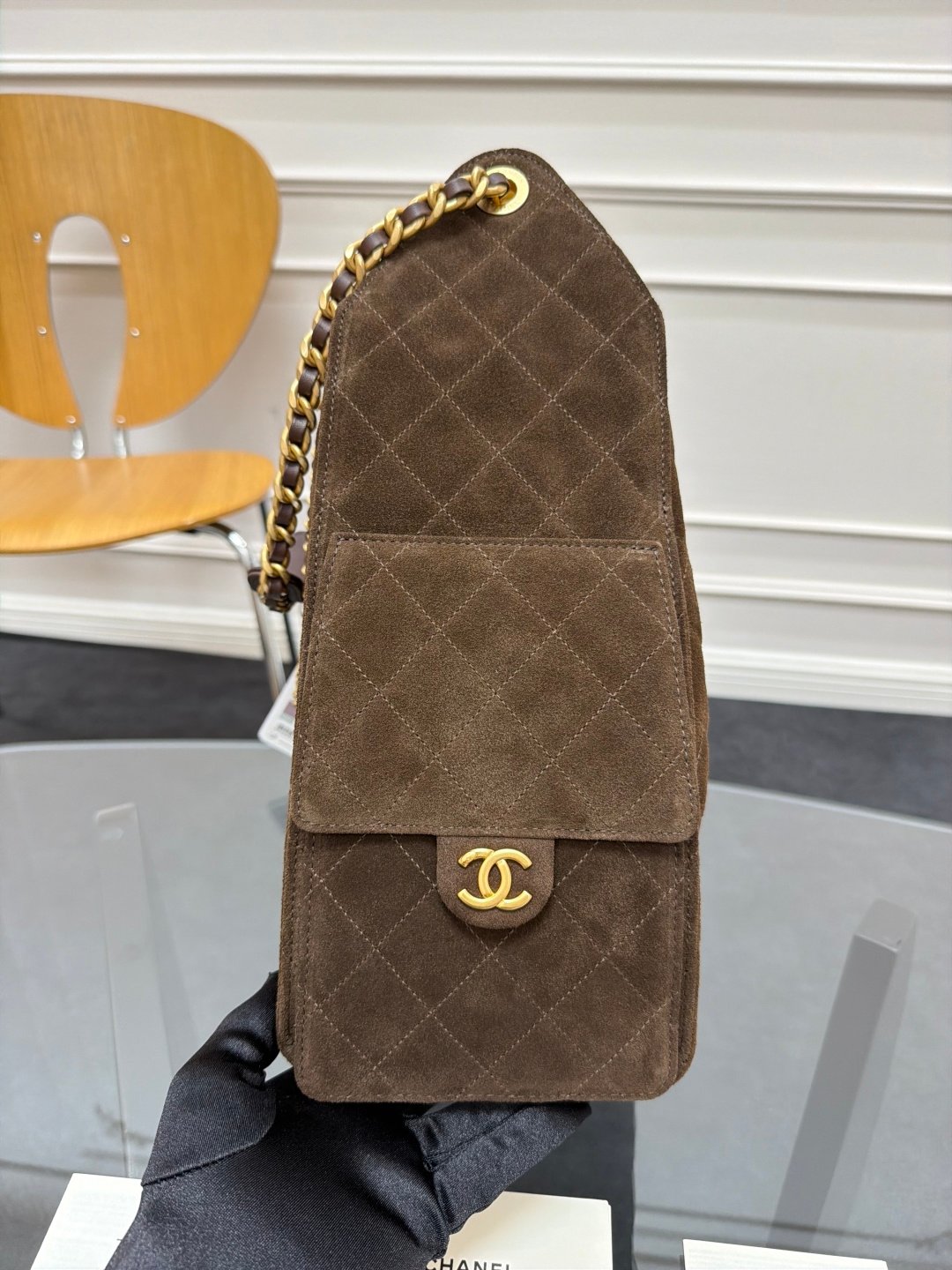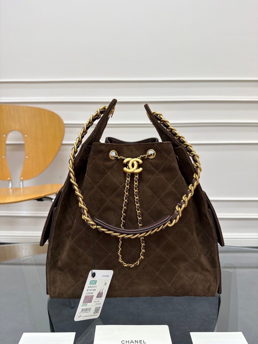 Latest Brown Suede Series Chane1 25C Stylish HOBO BAG Hip Bag AS5311 Unique Design Style Suede Leather Gold Metal Extremely Good Match Feels Much Better Than The Picture Capacity Is Very Impressive Has C Logo On Both Sides Elegant Retro Parisian Female Icon Super Like Size: 40×30×15cm