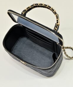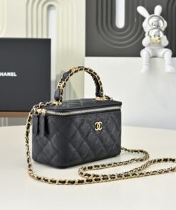 25b Dual C Logo Handle Makeup Box, Elegant Handle Design Adds More Fashion, Grainy Leather with Retro Metal Hardware for Durability and Wear Resistance, Classic Design Style, Versatile and Practical, Really Refined, HighAppearance, Small in Size, Falling Even More in Love with This Makeup Bag, Easy to Carry Around, Looks Beautiful with Any Outfit, Very Surprised by the New Arrival This Season.
