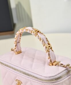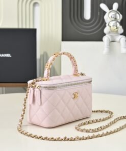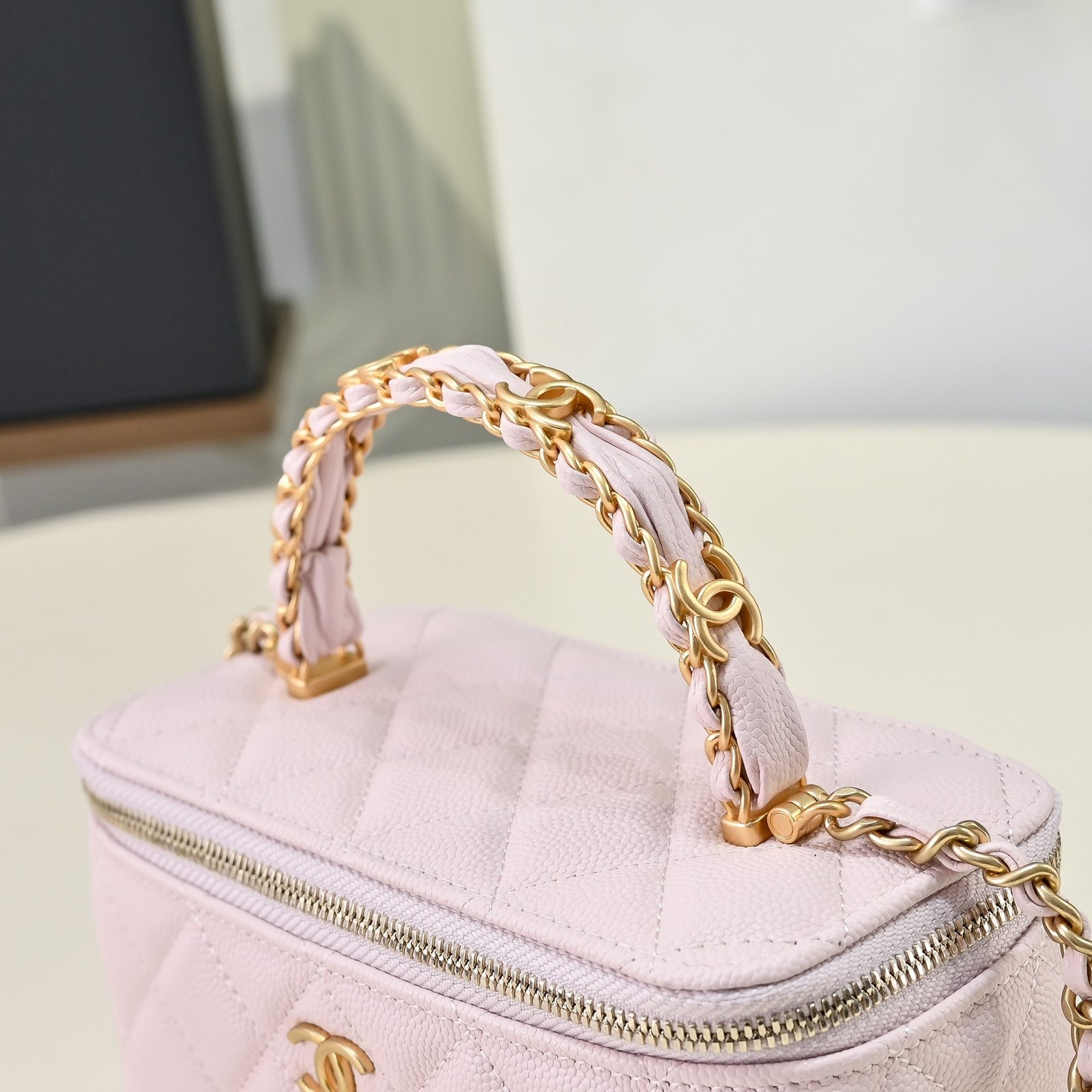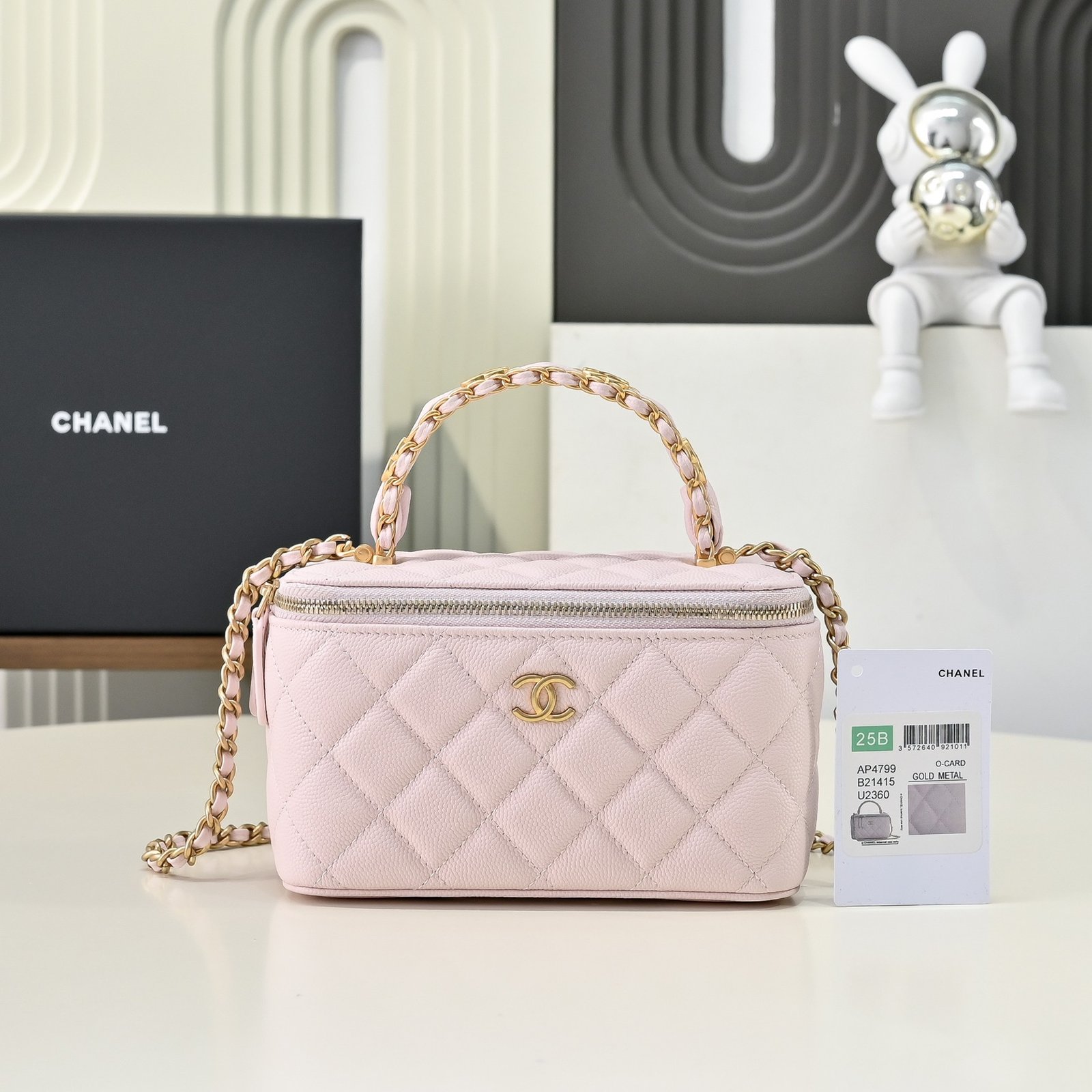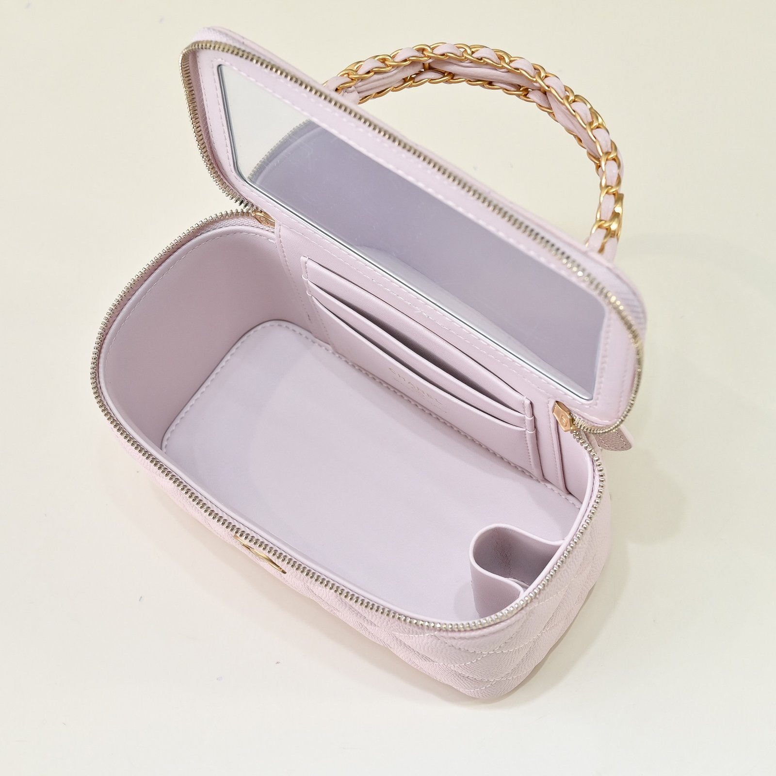 25b Dual C Logo Handle Makeup Box, Elegant Handle Design Adds More Fashion, Grainy Leather with Retro Metal Hardware for Durability and Wear Resistance, Classic Design Style, Versatile and Practical, Really Refined, HighAppearance, Small Size, Falling Even More in Love with This Makeup Bag, Easy to Carry Anywhere, Looks Beautifully with Any Outfit, Very Surprised by the New Arrival This Season.