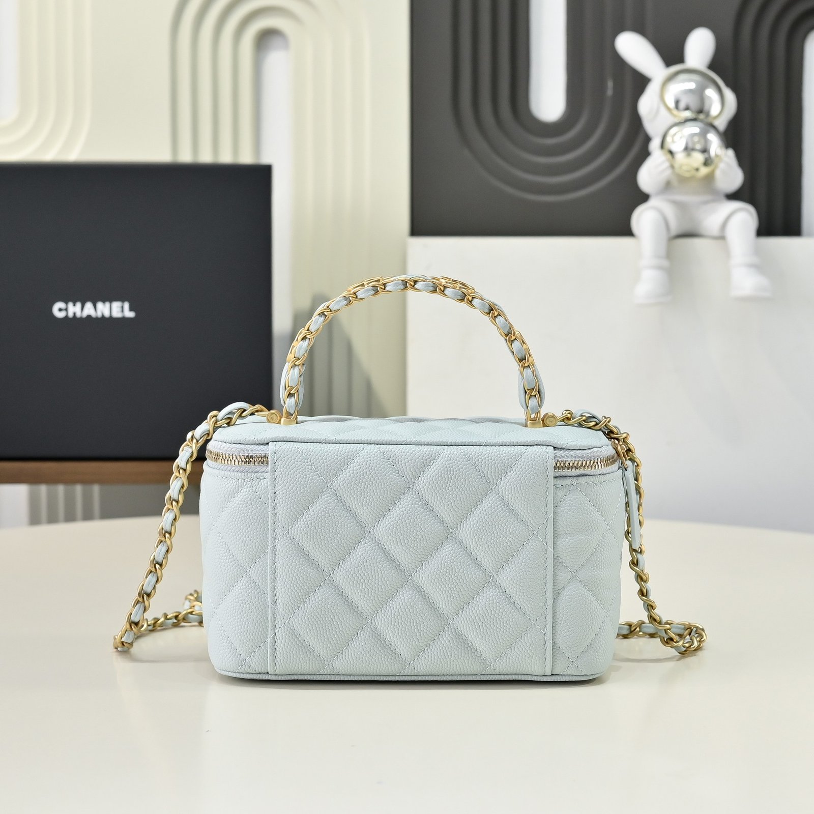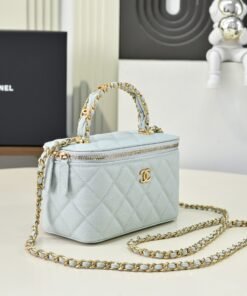 25b Dual C Logo Handle Makeup Box, Elegant Handle Design Adds More Fashion, Grainy Leather with Retro Metal Hardware for Durability and Wear Resistance, Classic Design Style, Versatile and Practical, Really Refined, HighAppearance, Small in Size, Falling Even More in Love with This Makeup Bag, Easy to Carry Around, Looks Beautiful with Any Outfit, Very Surprised by the New Arrival This Season.