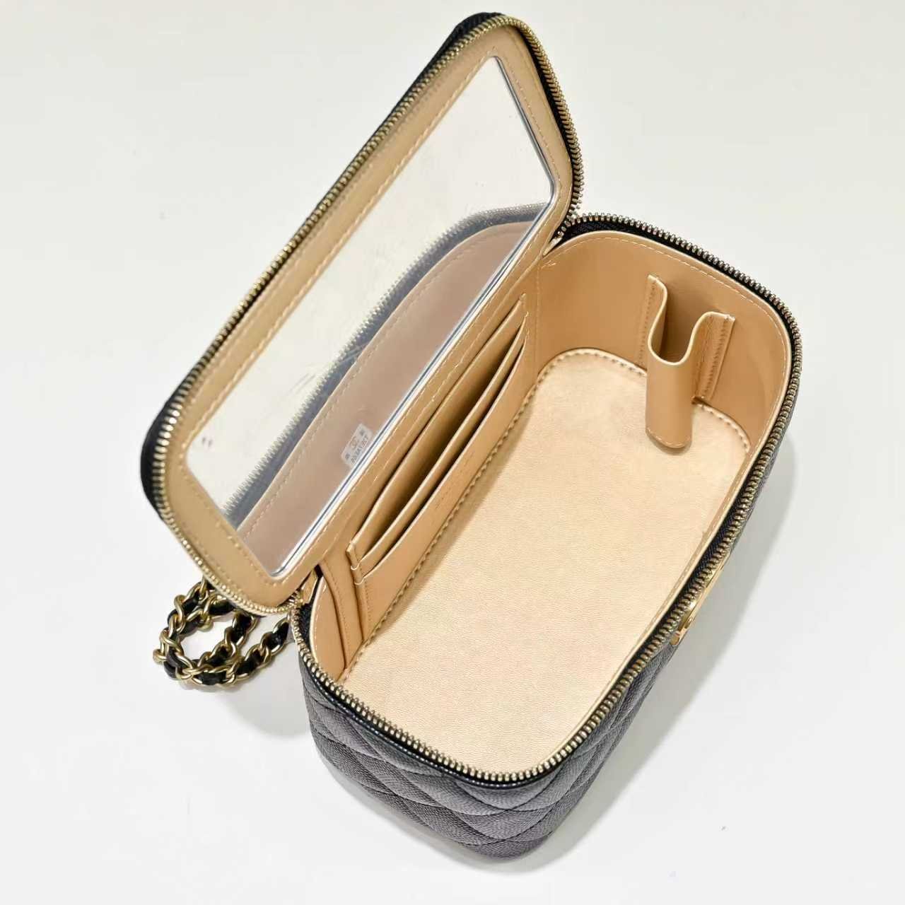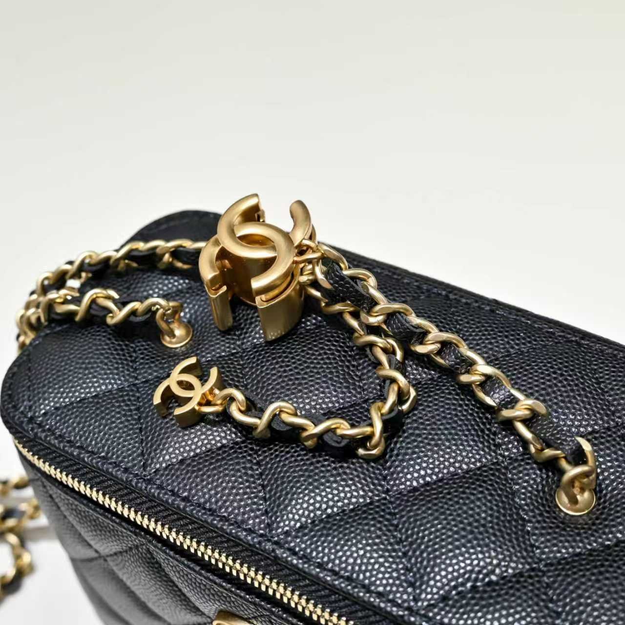 New makeup bag with Caviar Perle texture, really exquisite; highAppearance enamel logo, double C adjustment buckle is a highlight. Love it more and more. It looks great when carried casually. It can match any clothes to make you look amazing. Model number A. Size: 9.5-17-8.