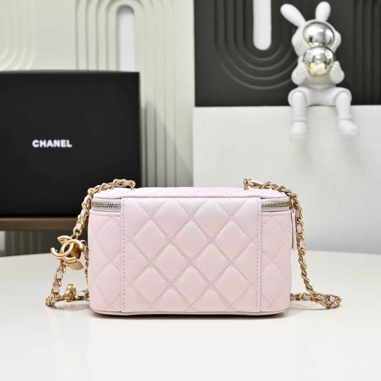 New makeup bag with Caviar Perle texture, really exquisite; highAppearance enamel logo, double C adjustment buckle is a highlight. Love it more and more. It looks great when carried casually. It can match any clothes to make you look amazing. Model number A. Size: 9.5-17-8.