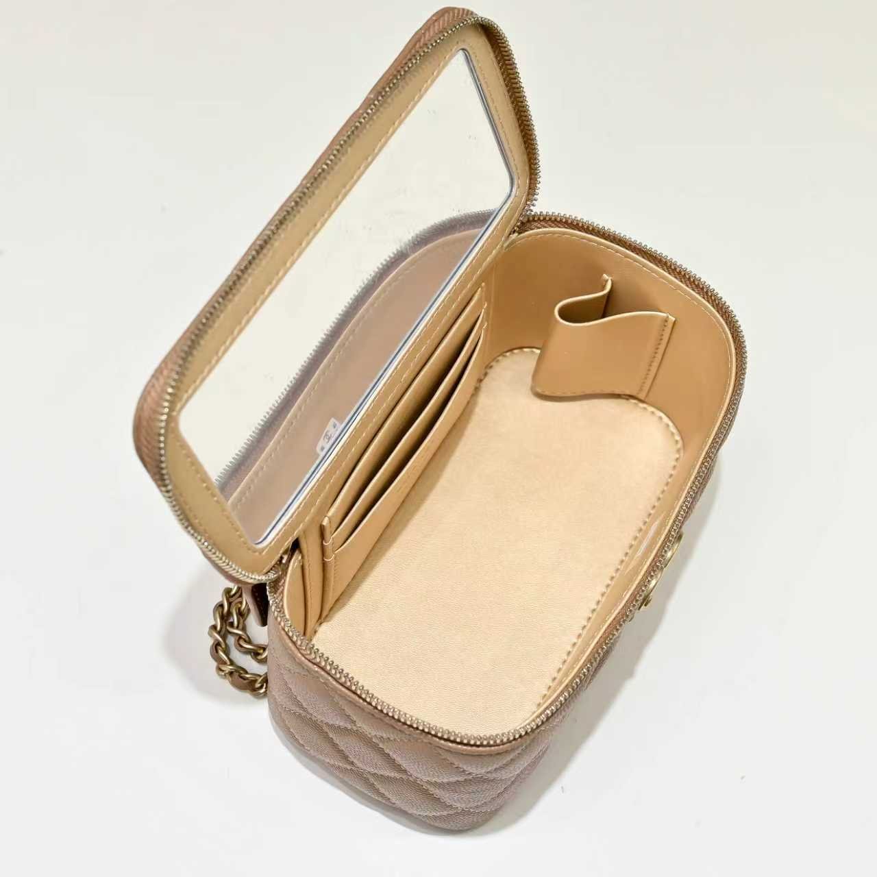 New makeup bag with Caviar Perle texture, really exquisite; highAppearance enamel logo, double C adjustment buckle is a highlight. Love it more and more. It looks great when carried casually. It can match any clothes to make you look amazing. Model number A. Size: 9.5-17-8.
