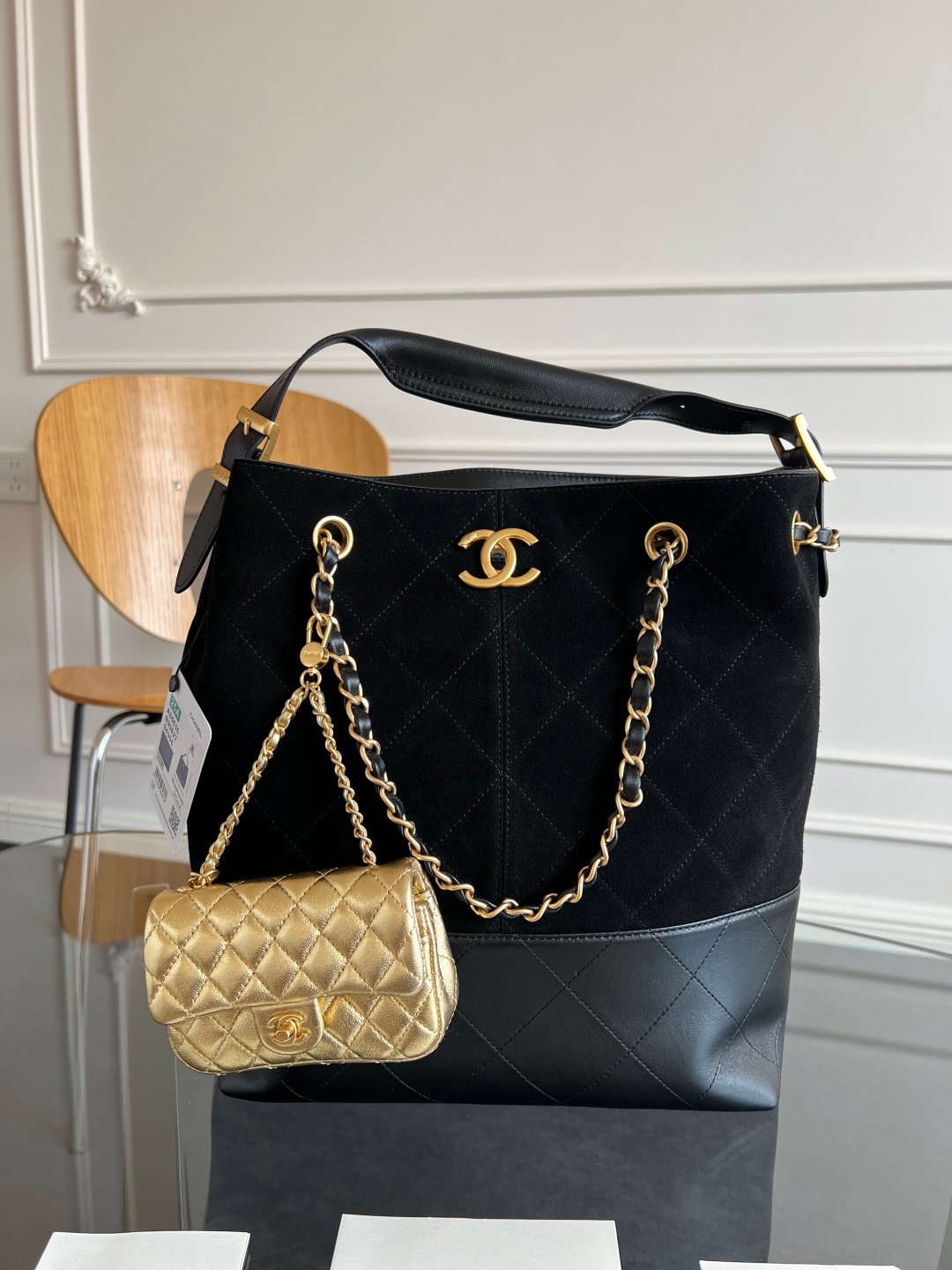 Exclusive quality, high-grade original stock,Spot25A, suede package vertical style 25A series, a new wave of designs is here! This suede patchwork bag isIt’s simply a divine design.! High-grade suede meets smooth leather,High texture. The diamond pattern combined with the classic double C logo gives it aModest Luxury look. Suede and glossy leather createThe layering is amazing! Adjustable vintage gold chain, versatile for single shoulder, slouch, or hand carry. It can fit your phone,Lipstick, and cushion comfortably. Practical and non-collapsible! PerfectVersatile and Unisex! Size: 39*33*16cm AS5635
