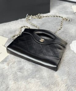 Black, light gold leather; 24B’s 31bag nano! Mini size made of leather, paired with a sophisticated light metal tone. Pictures taken in real life are superHot and adorable! It’s timeless and not only cute but also practical, capable of holding two large smartphones. Highly recommended for its beautiful appearance.