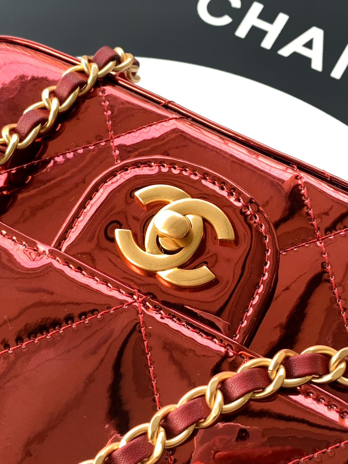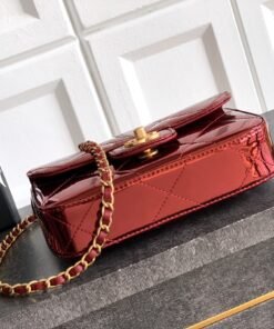 ️ ️ ️《Coffee Red》Trumpet Size OHANEL 25k Showcase Same Style ❤️ Golden Lacquer Handle Cover Bag, Lacquer Mirror Material Really Stands Out, Like a Light-Up Beauty Queen’s Purse! Sweet and Cool Sensation Coexists! The Capacity Space is Also More Than Enough Size: 18-4.5-13cm