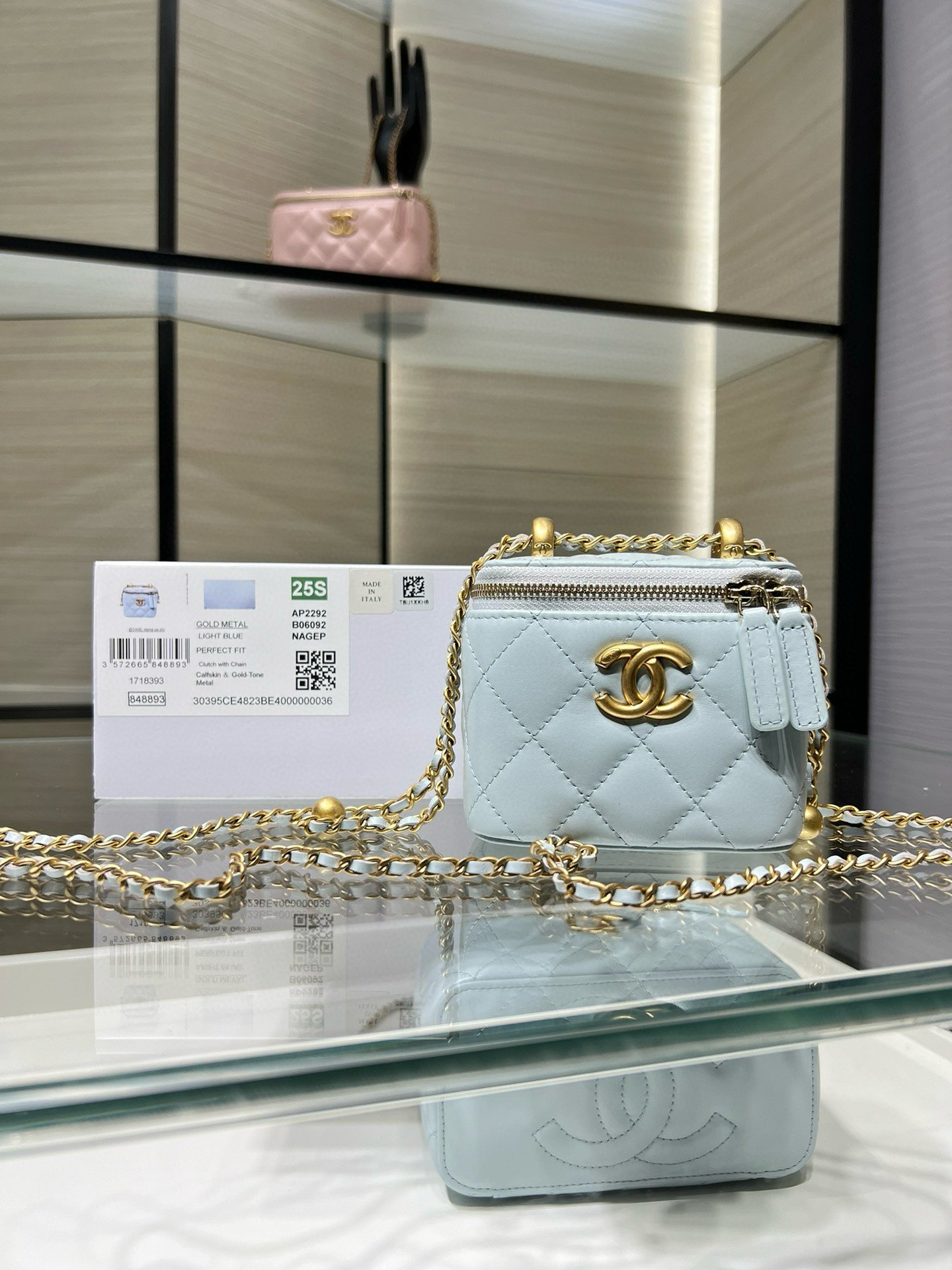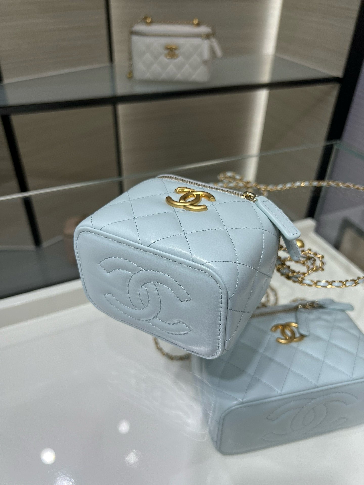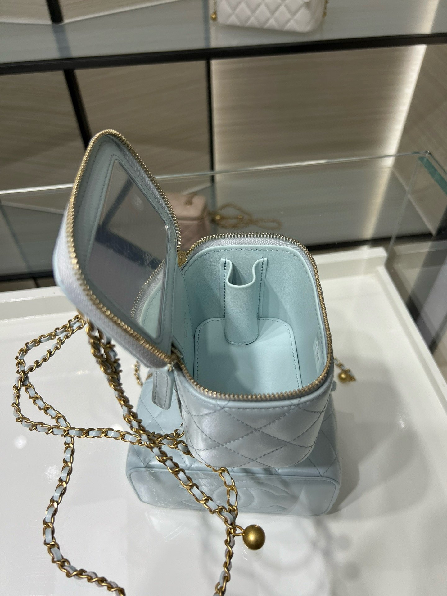 Ohanel 25s new handmade workshop oil wax leather, built-in mirror, full leather interior, double gold balls. Pull chain box backpack with retro chain strap, adjustable single shoulder or crossbody, size 10X7X9.