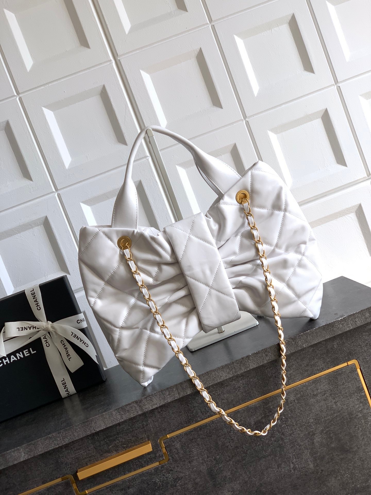 “White” Big OHANEL Butterfly Knot Bag Design and Style Analysis Material variety, versatile style: In addition to denim material, there is also a black original Antiba wax leather version, which has superiorTexture with natural glossiness and clear surface texture withTexture. Compared to traditional lambskin, it can effectively prevent scratches and also has some waterproof properties, allowing the bag to maintain perfect condition in various environments. Practical aesthetics, daily elegance: Although theAppealing and exquisite appearance,Practicality and capacity are perfectly balanced.. The interior space is designed reasonably, accommodating items like smartphones, keys, and cosmetics. The size of the bag is moderate, not too bulky or too small, making it an ideal choice for modern women’sDaily Commuting or Attending a Banquet. Whether paired with casual attire or formal evening gowns, it can easily enhance the refinement of the overall outfit. Brand heritage, modern interpretation!”