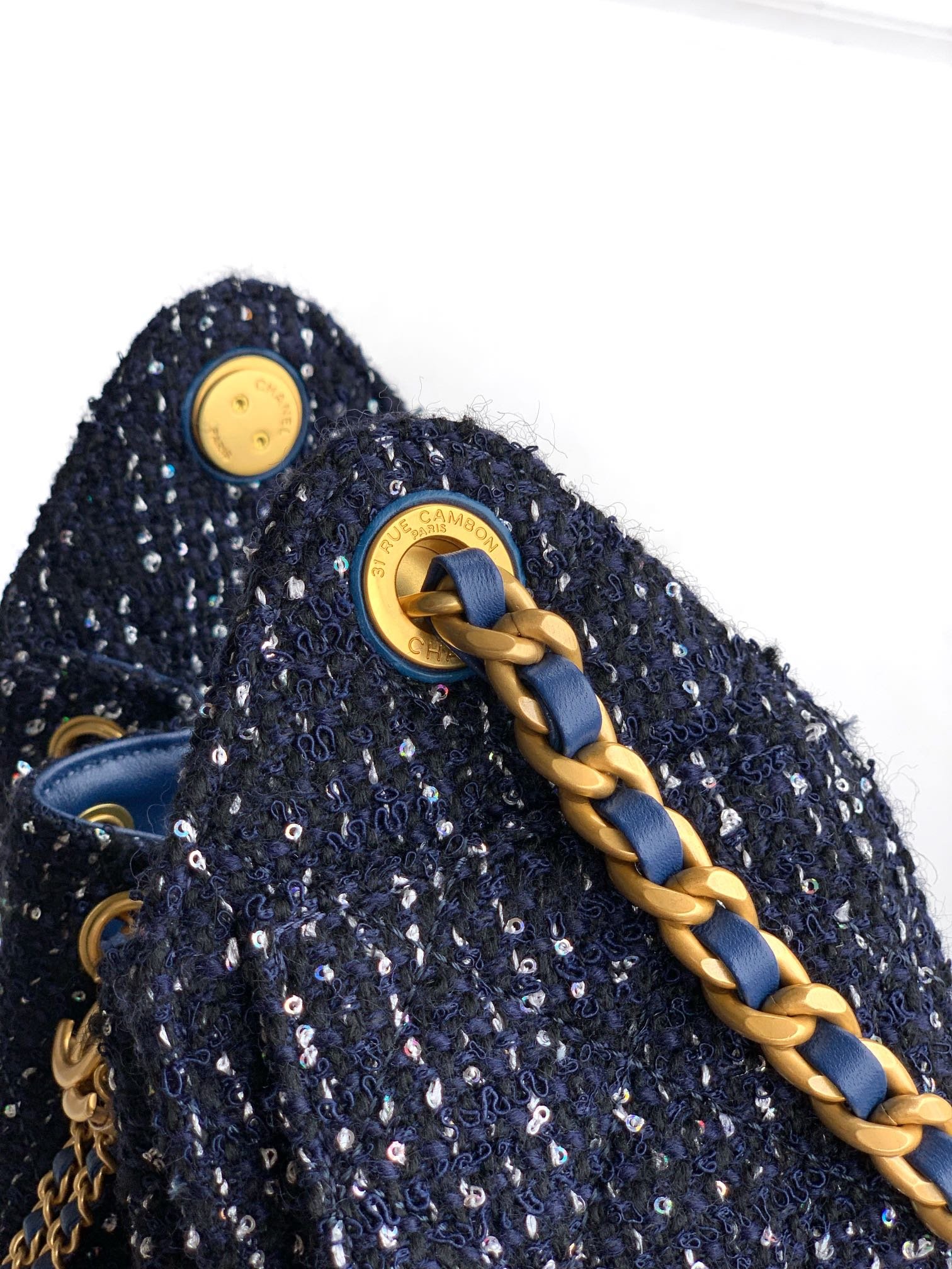 Blue Mini Ohanel 25a Senior Workshop ~ Hanai 25bag is too noble! Spring and SummerNew Hippie Style , shiny black gold , The relaxed and lazy bag style deserves to be the summer vacation king! Not only beautiful but also practical ✨ fullyAligns with the expectations of most people today for bags Material: Hanai fabric vs. Golden metal