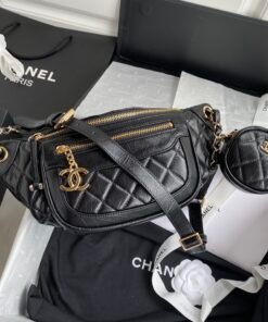 Ohanel AS1077 Chanel handbag, new autumn and winter style waist purse with coin pocket, can be slung over the shoulder. Super like! Size: 34x15x6cm