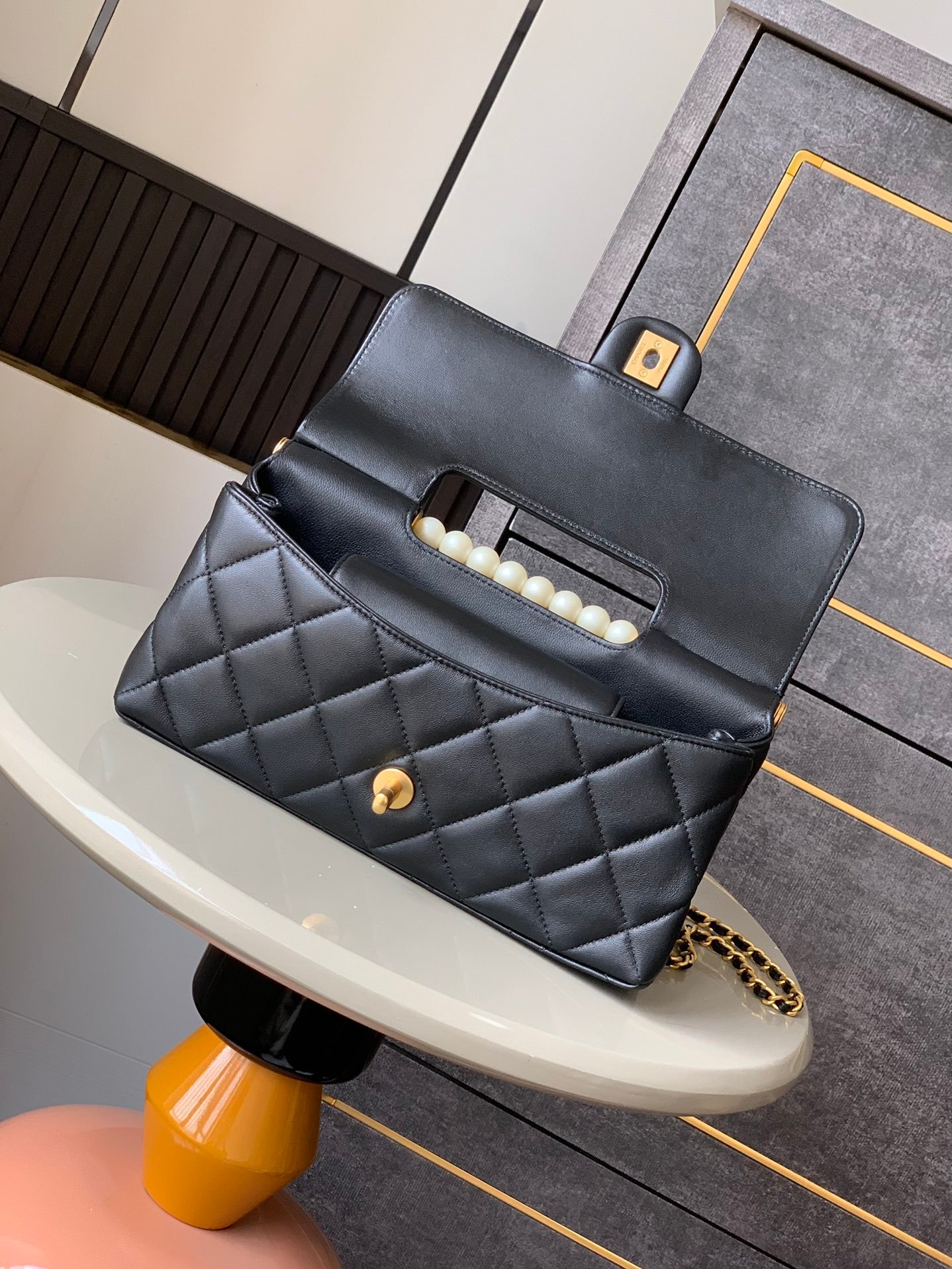 OHANEL 25P Pearl Handle Lid Pouch Drop-Lid Pouch Really Brightens Up! The pearl handle and design add a touch of elegance and nobility, with great practicality. It has plenty of room for all your daily essentials. To be honest, the pearl handle bag is a hidden gem. Not only does it showcase your taste but also meets your everyday needs. It looks elegant and unique when worn. Size: 17.5 x 25 X 7cm, 5390